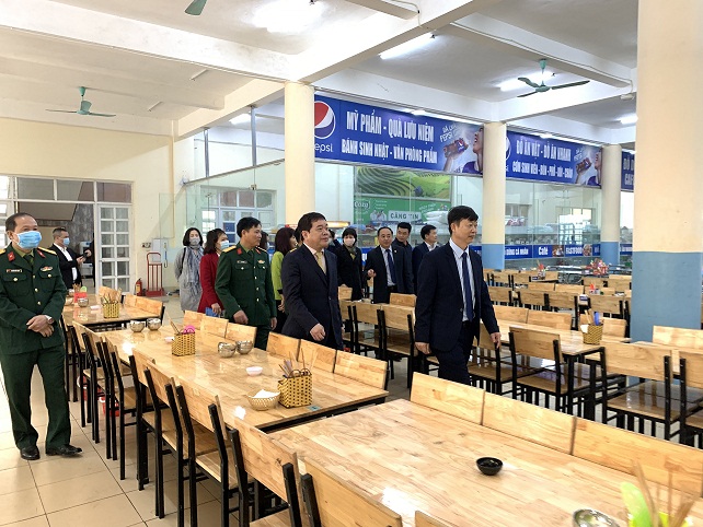 Ngay sau buổi Lễ khai mạc, GS.TS Trần Thọ Đạt – Chủ tịch Hội đồng trường cùng Đoàn công tác của Nhà trường đã đi kiểm tra công tác vệ sinh an toàn thực phẩm và đi tham quan phòng ở của sinh viên.