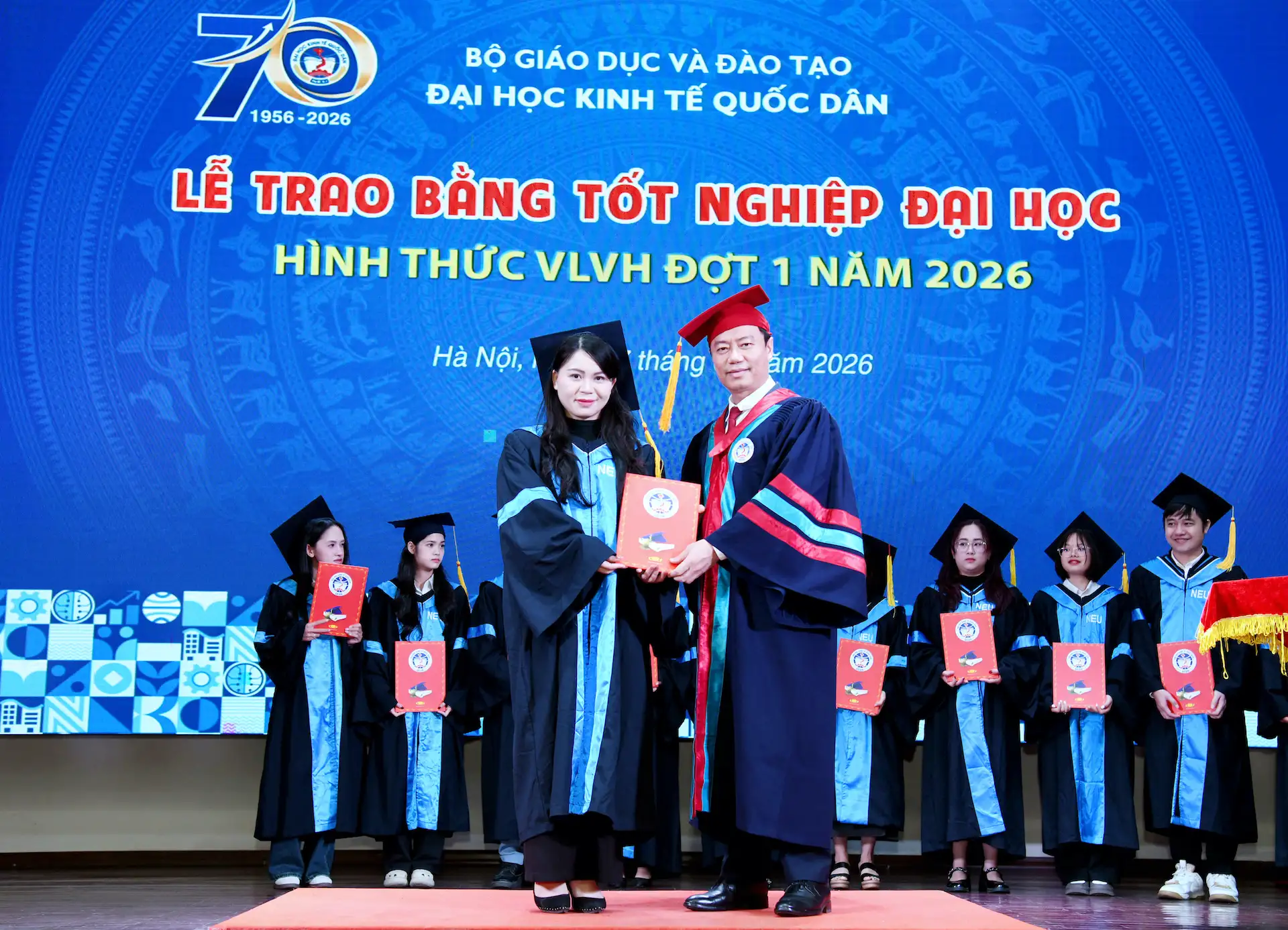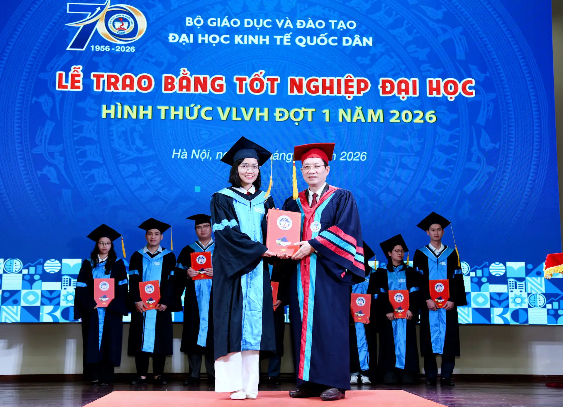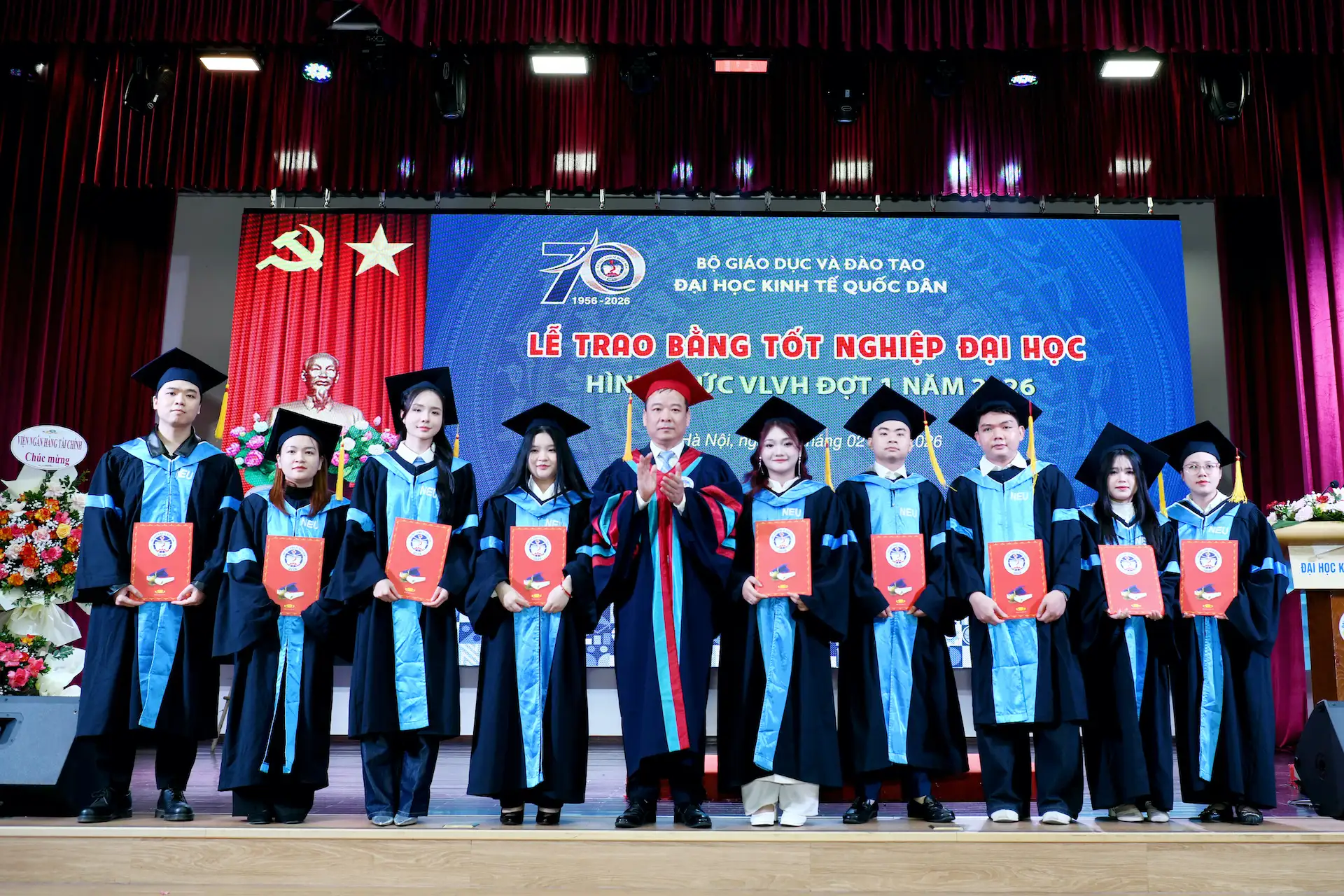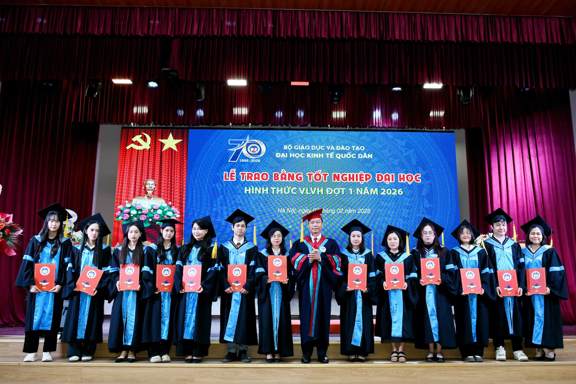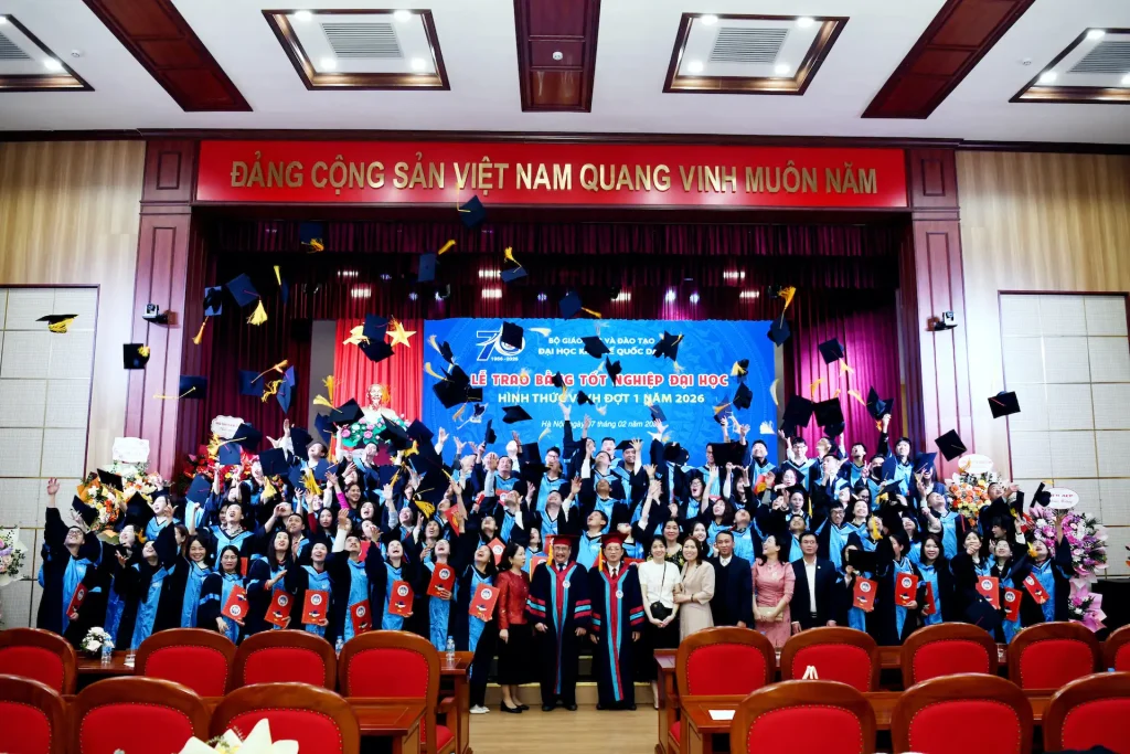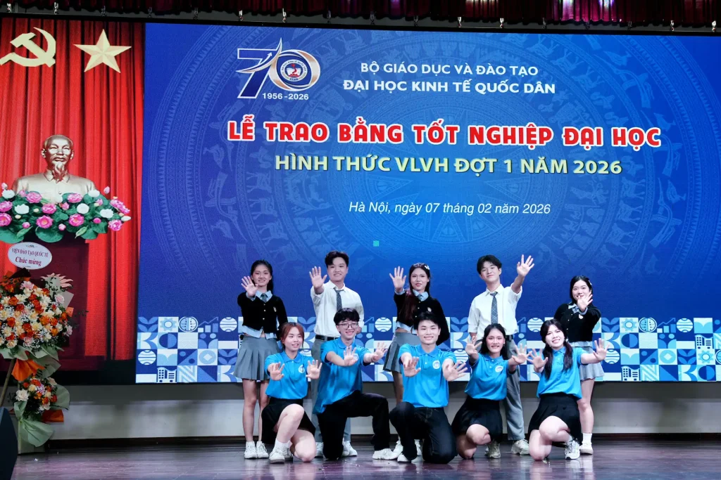 Sáng ngày 07/02/2026, Đại học Kinh tế Quốc dân đã tổ chức Lễ trao bằng tốt nghiệp đại học hình thức Vừa làm vừa học đợt 1 năm 2026 cho 215 tân Cử nhân.