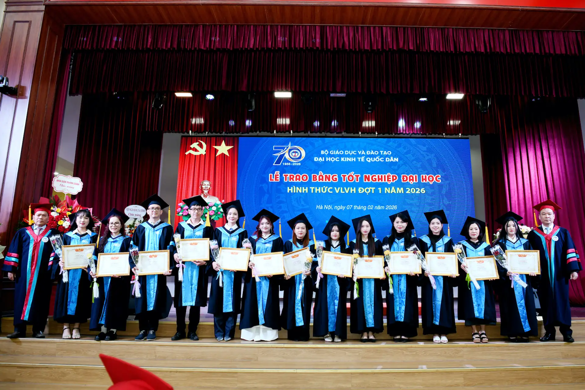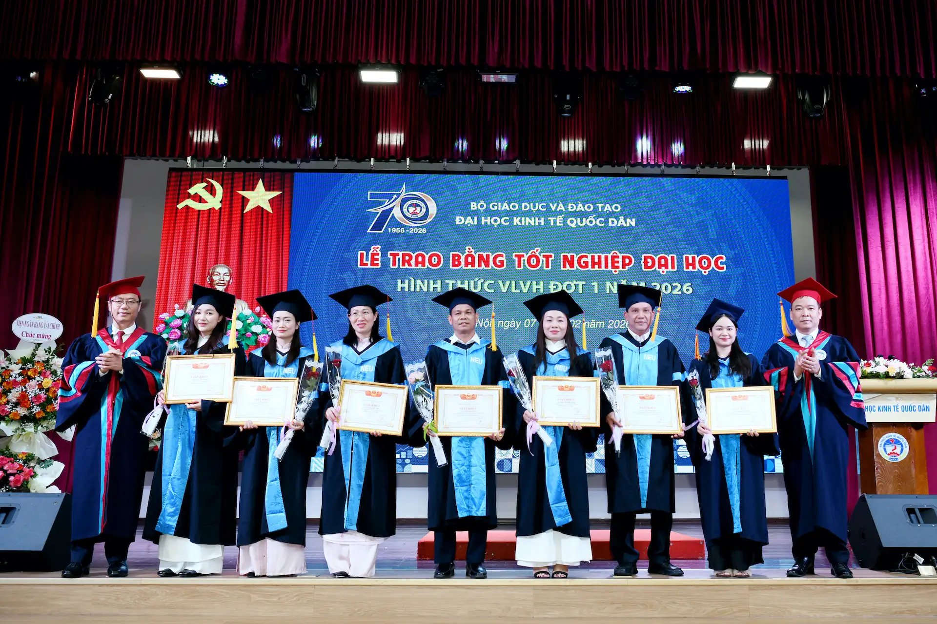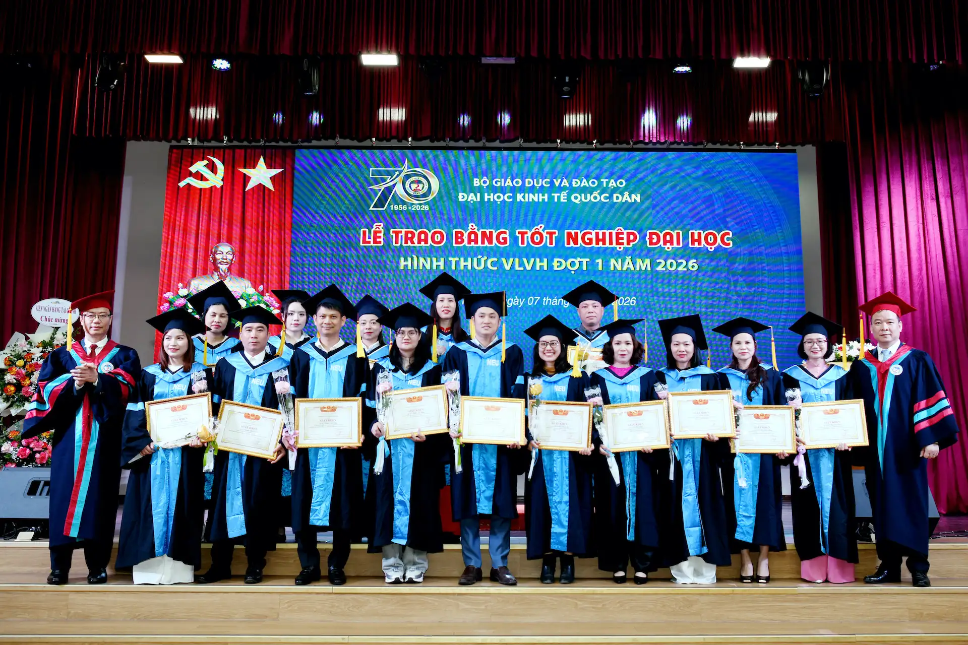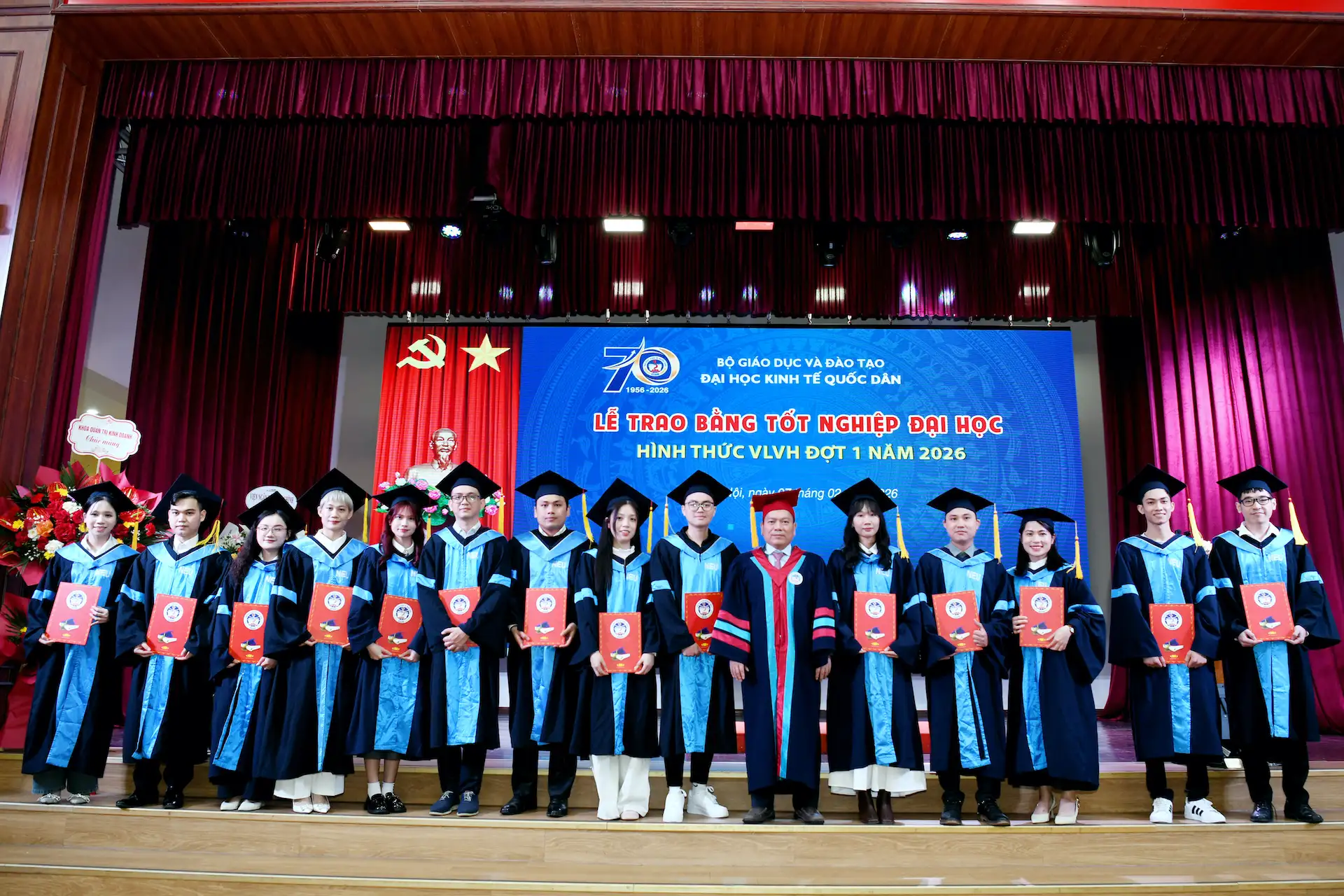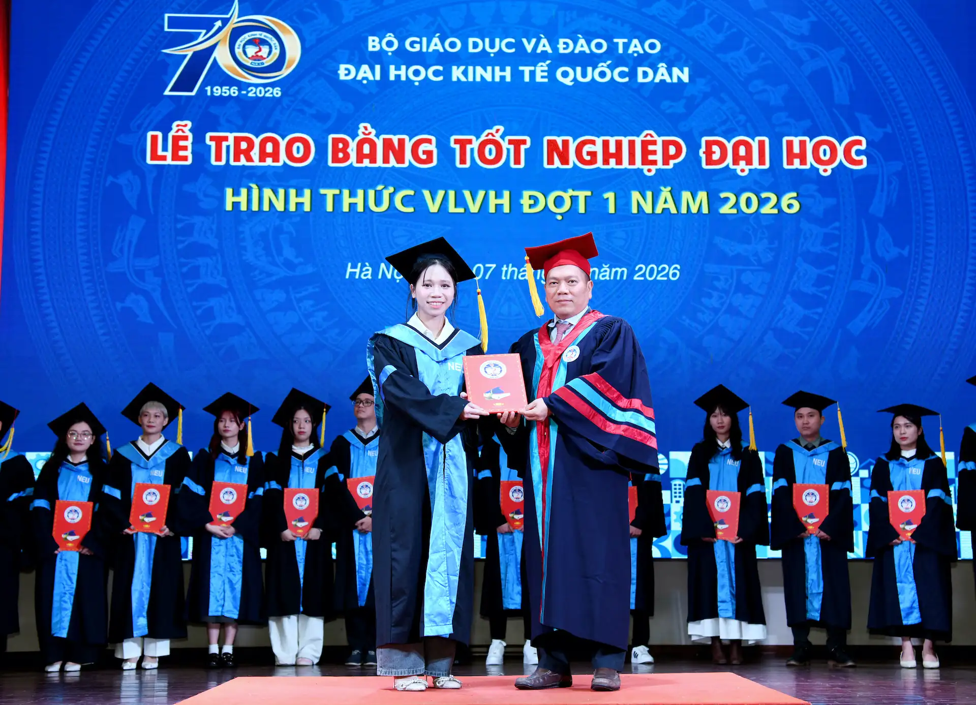 Sáng ngày 07/02/2026, Đại học Kinh tế Quốc dân đã tổ chức Lễ trao bằng tốt nghiệp đại học hình thức Vừa làm vừa học đợt 1 năm 2026 cho 215 tân Cử nhân.