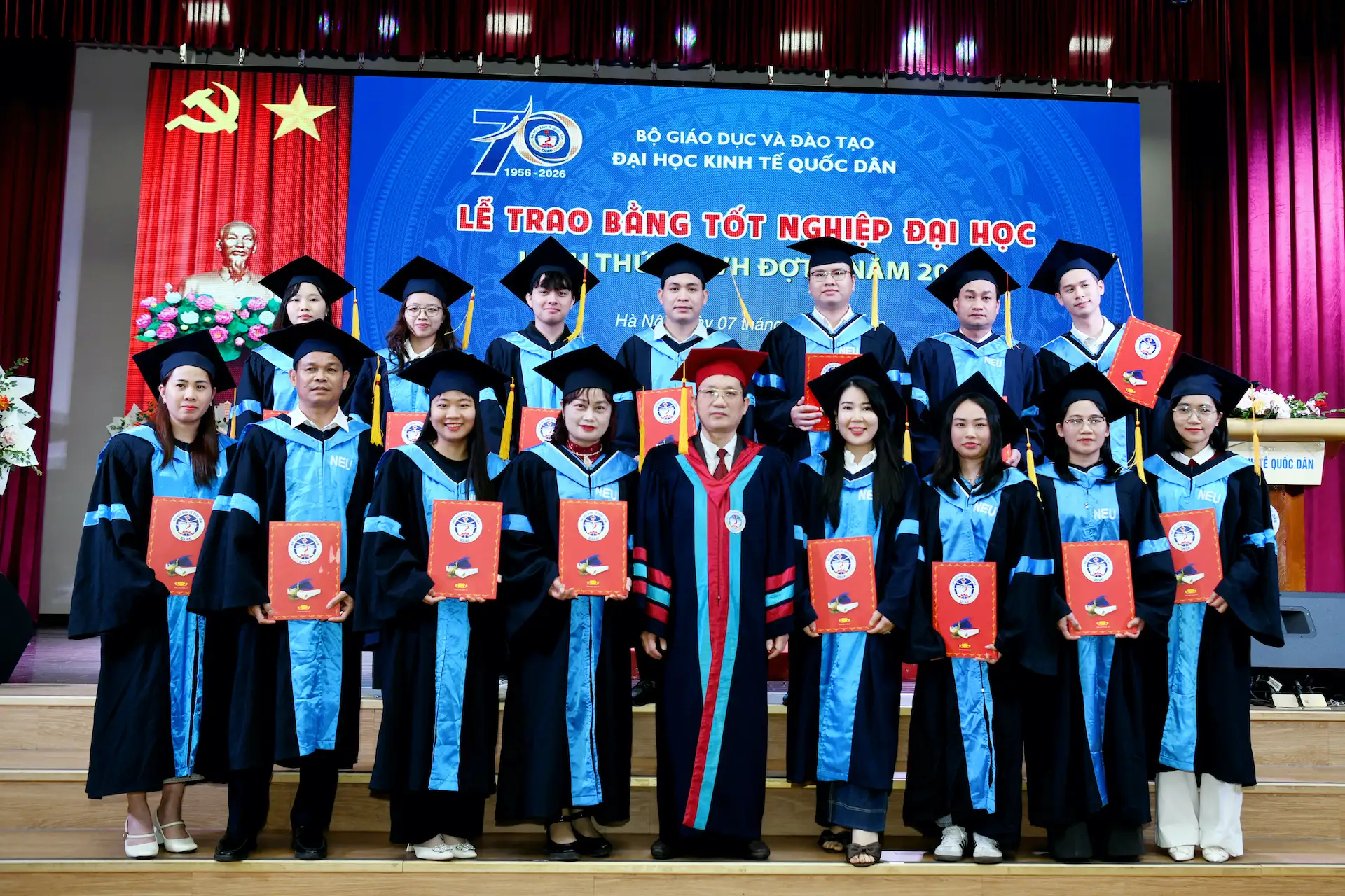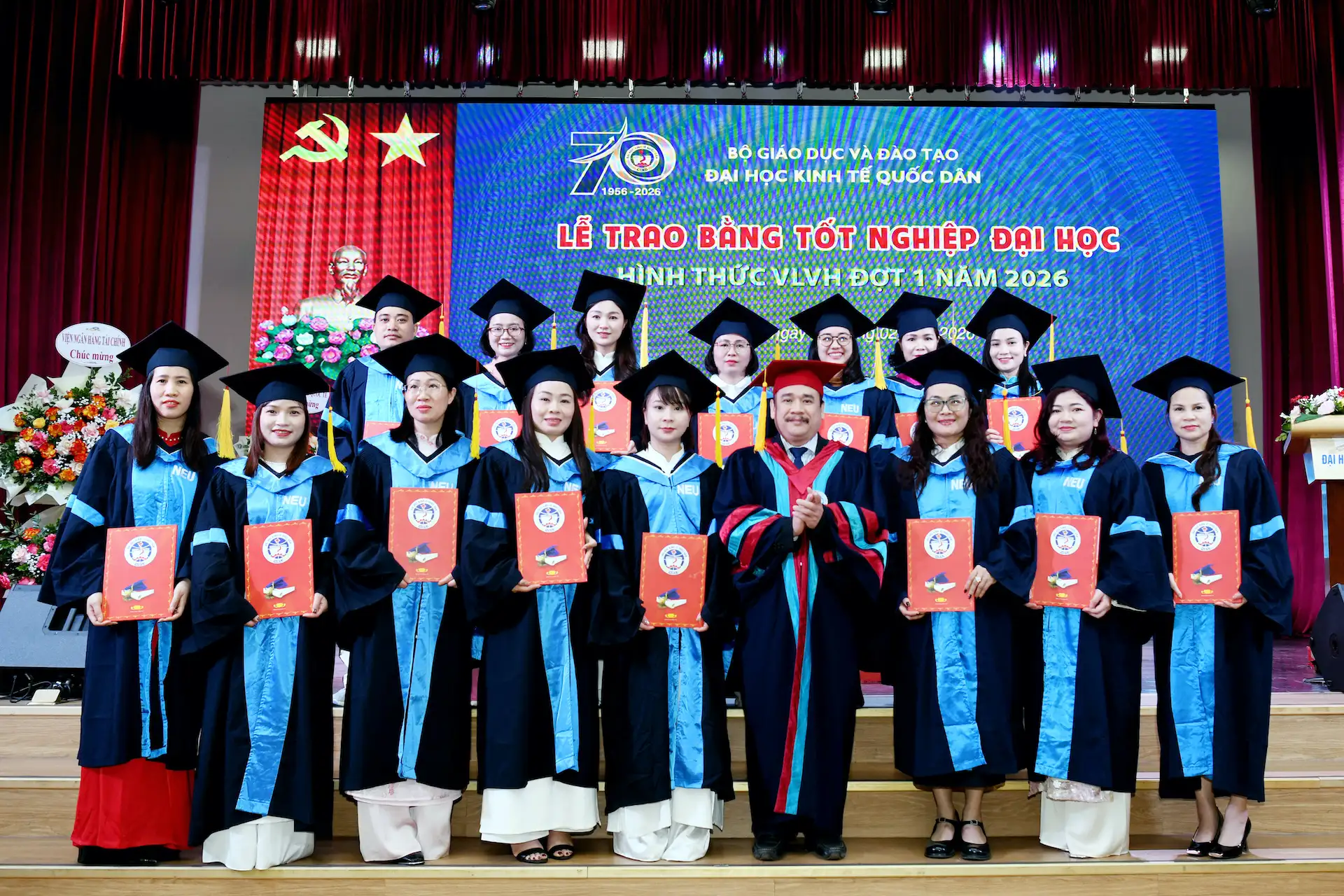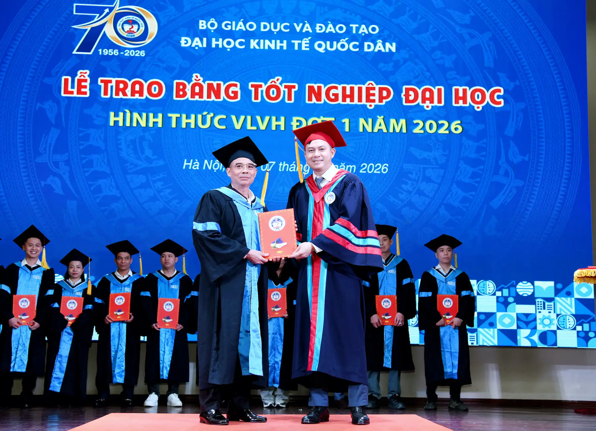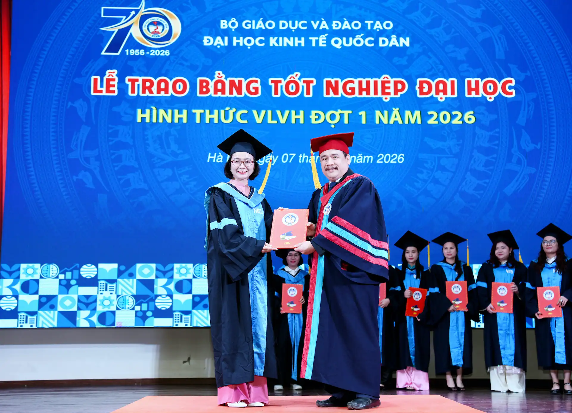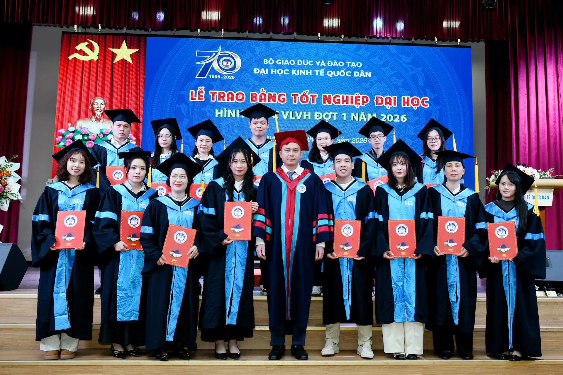 Sáng ngày 07/02/2026, Đại học Kinh tế Quốc dân đã tổ chức Lễ trao bằng tốt nghiệp đại học hình thức Vừa làm vừa học đợt 1 năm 2026 cho 215 tân Cử nhân.