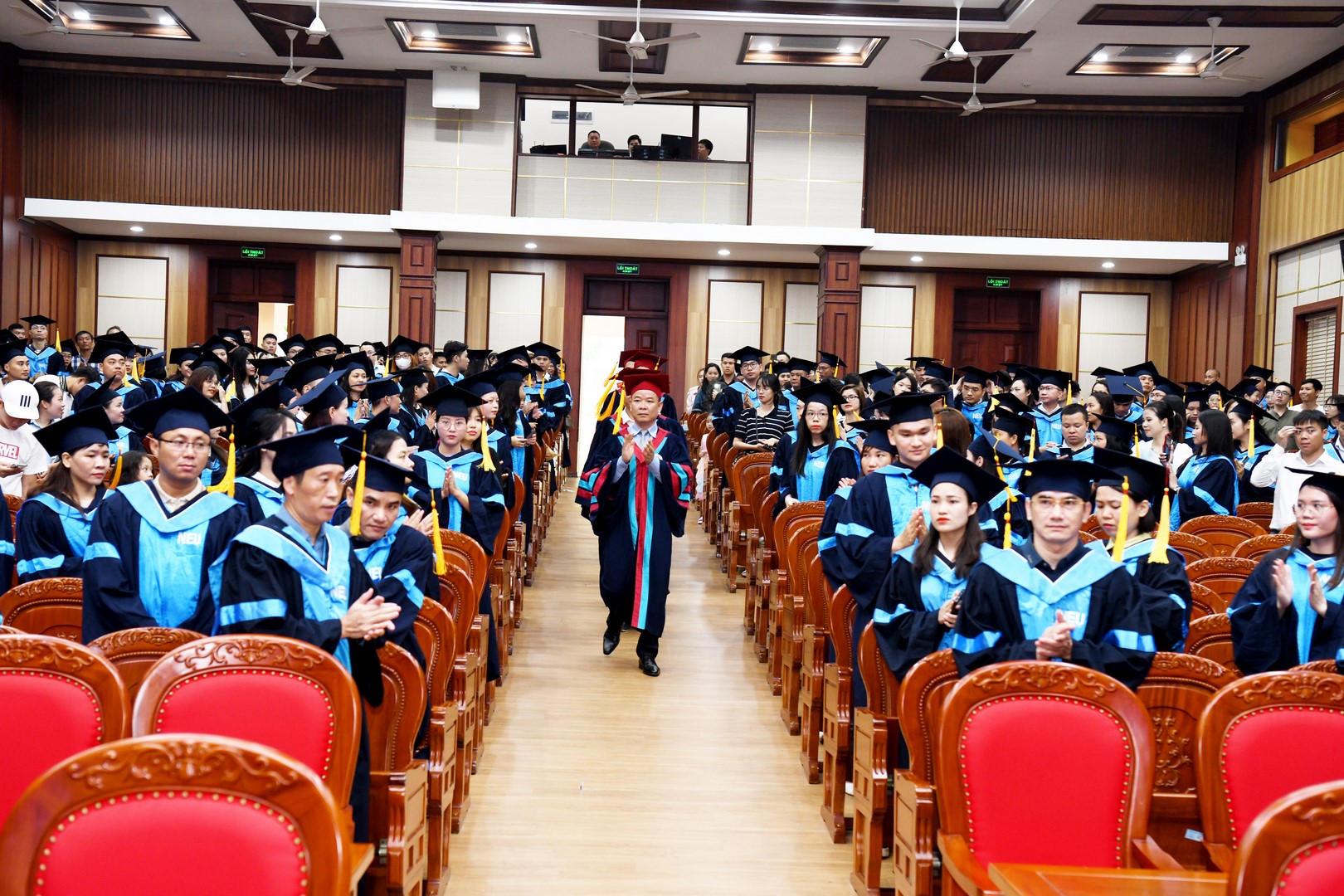 Phó Hiệu trưởng Bùi Huy Nhượng nhấn mạnh, hành trình học tập này kết thúc cũng là lúc cánh cửa cơ hội và thách thức mới sẽ mở ra cho các em. Các em hãy sẵn sàng đón nhận và chinh phục để khẳng định bản thân và góp phần khẳng định chất lượng đào tạo của ngôi trường mà các em đã lựa chọn đi cùng những năm tháng thanh xuân.