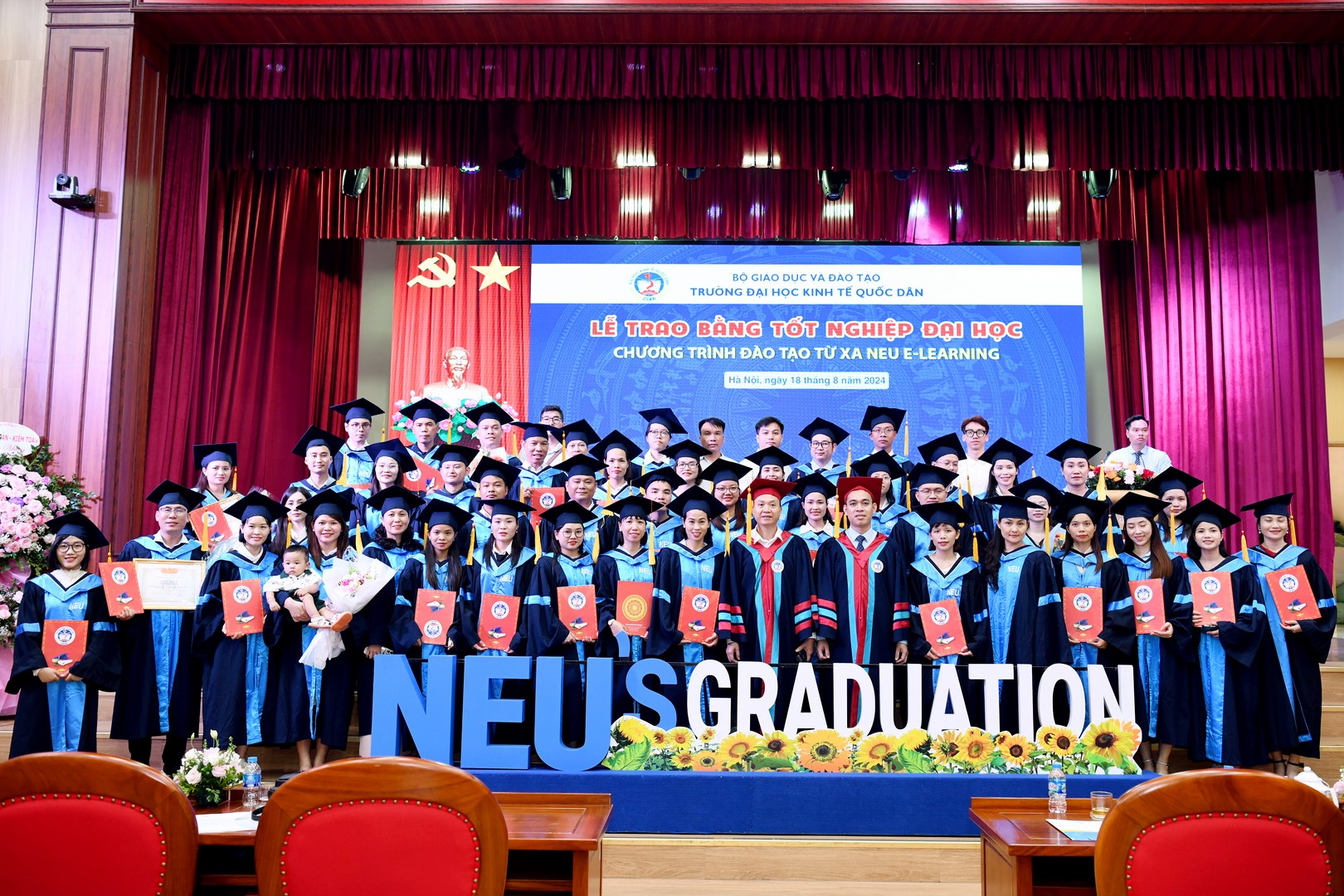 226 tân Cử nhân chương trình đào tạo từ xa NEU E-learning hân hoan trong Lễ trao bằng Tốt nghiệp đại học năm 2024