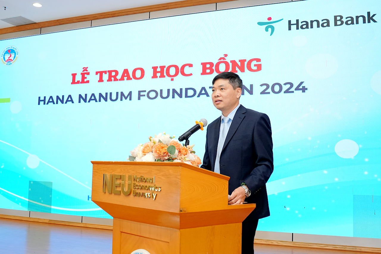 Phát biểu tại buổi Lễ, PGS.TS Phan Hữu Nghị – Phó Viện trưởng Viện Ngân hàng – Tài chính gửi lời cảm ơn lãnh đạo Ngân hàng KEB Hana chi nhánh Hà Nội nói riêng và Ngân hàng KEB Hana nói chung đã luôn dành sự quan tâm, hỗ trợ dành cho sinh viên của Viện Ngân hàng – Tài chính, Đại học Kinh tế Quốc dân.