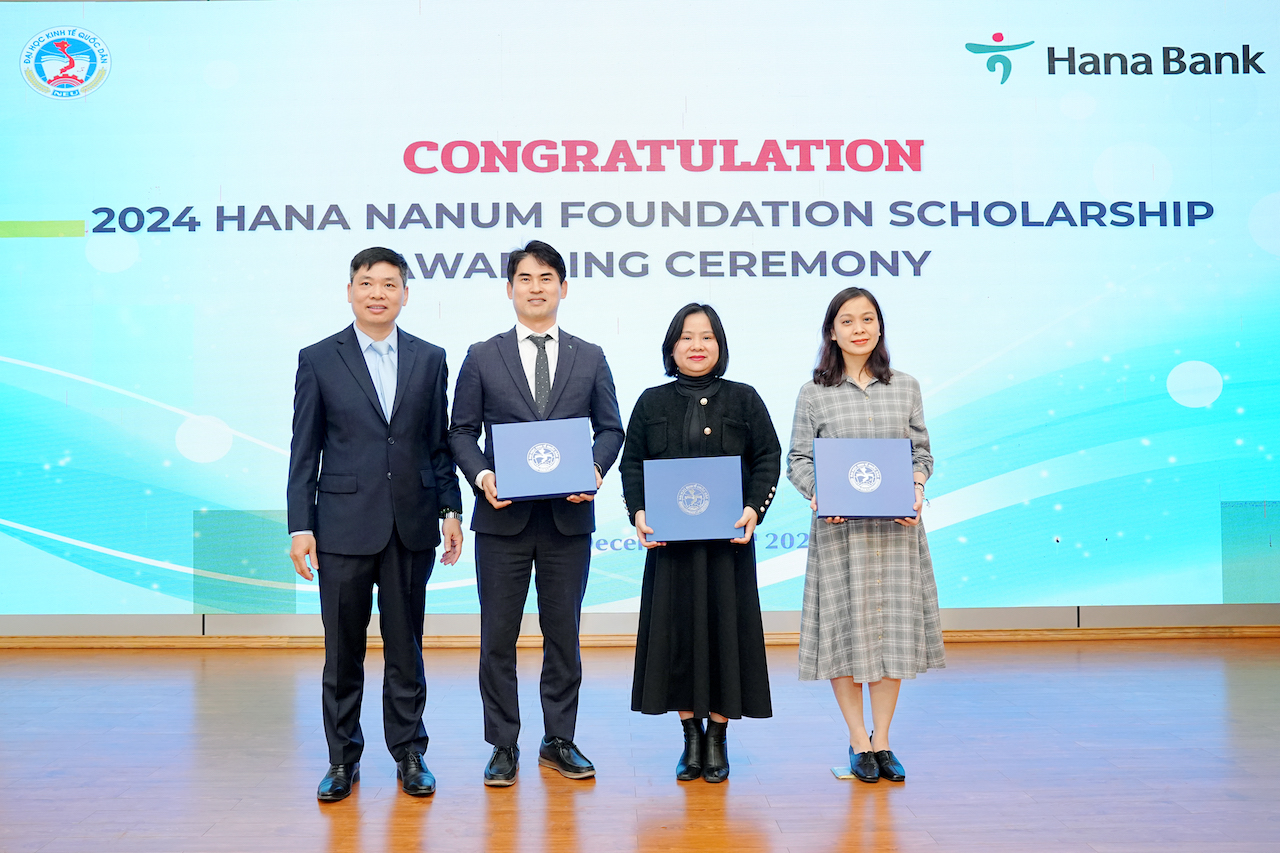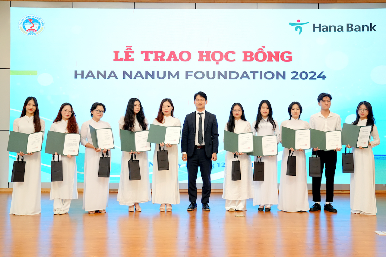 Với mục tiêu hỗ trợ sinh viên vượt khó đạt kết quả tốt trong học tập và những sinh viên đặc biệt xuất sắc của Viện Ngân hàng – Tài chính, Đại học Kinh tế Quốc dân, chiều ngày 18/12/2024, Quỹ học bổng HANA Nanum đã trao 30 suất học bổng cho các sinh viên có thành tích học tập và rèn luyện suất sắc của Viện. Học bổng này không chỉ là sự ghi nhận xứng đáng cho những cố gắng bền bỉ của các em, mà còn là nguồn động viên, khích lệ để các bạn sinh viên tiếp tục vững bước trên con đường học vấn.