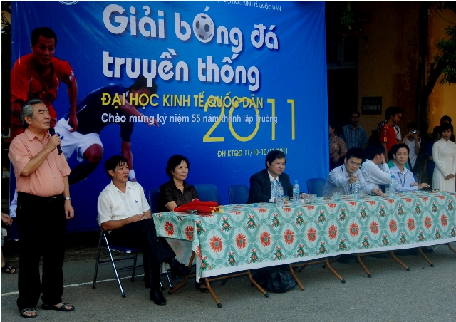 Lễ khai mạc giải được tổ chức vào sáng 11/10/ 2011, tại sân bóng đá khu vực ký túc xá Đại học Kinh tế Quốc dân. Dự lễ khai mạc giải Bóng đá truyền thống sinh viên mừng kỷ niệm 55 năm thành lập trường có sự hiện diện của GS.TS Phan Công Nghĩa – Phó Hiệu trưởng – Chủ tịch Hội TT ĐH&CN trường, GS.TS Phạm Quang Trung – Phó Hiệu trưởng, Th.s Nuyễn An Khánh – Phó Chủ tịch CĐ trường, Th.s Hoàng Hà – Bí thư Đoàn Thanh niên, thầy Cao Ngọc Hiên– Trưởng Bộ môn GDTC – Phó trưởng Ban tổ chức giải, cùng các thầy cô giáo đại diện các đơn vị có đội bóng tham gia cũng đến dự.