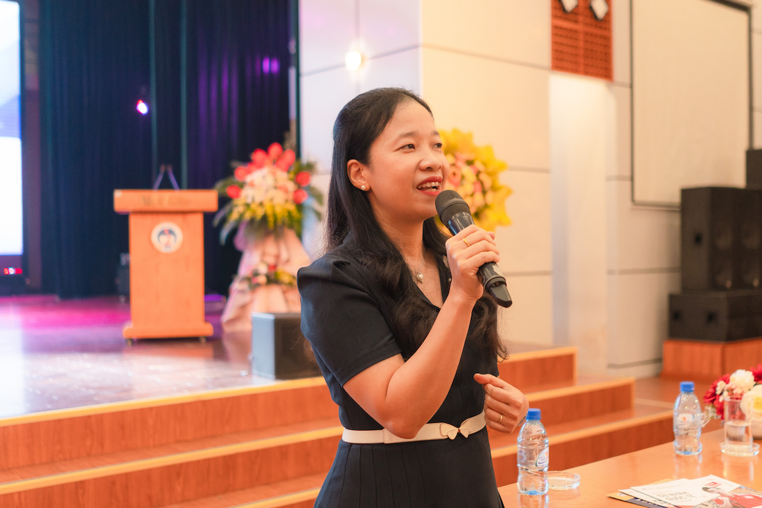 Cô Phan Anh Thuỳ – Phó Hiệu trưởng Trường THPT Chí Linh, Hải Dương phát biểu