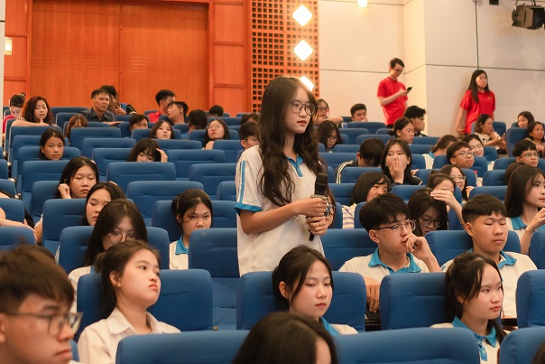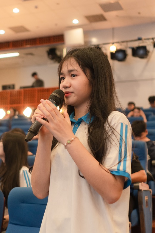 Các em học sinh hào hứng đặt câu hỏi tại chương trình