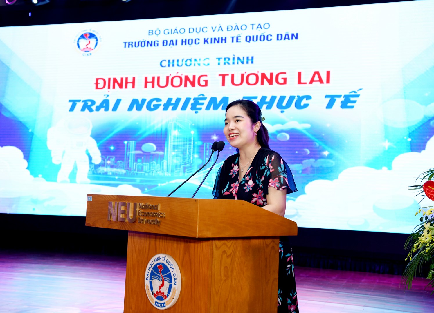 Chương trình diễn ra với các hoạt động nổi bật như giới thiệu tổng quan về trường, tư vấn về các ngành đào tạo và thông tin tuyển sinh của trường; trải nghiệm khi trở thành một sinh viên đại học, được tham quan trực tiếp không gian học tập thân thiện và hiện; tham quan vườn thượng uyển, Thư viện Phạm Văn Đồng cũng như Thư viện điện tử dùng chung cho 45 trường đại học trong nước do Ngân hàng Thế giới tài trợ, đặc biệt các em còn được trải nghiệm một ngày là sinhviên tại những không gian học tập và sinh hoạt của Đại học Kinh tế Quốc dân – ngôi trường với bề dày gần 70 năm tuổi.