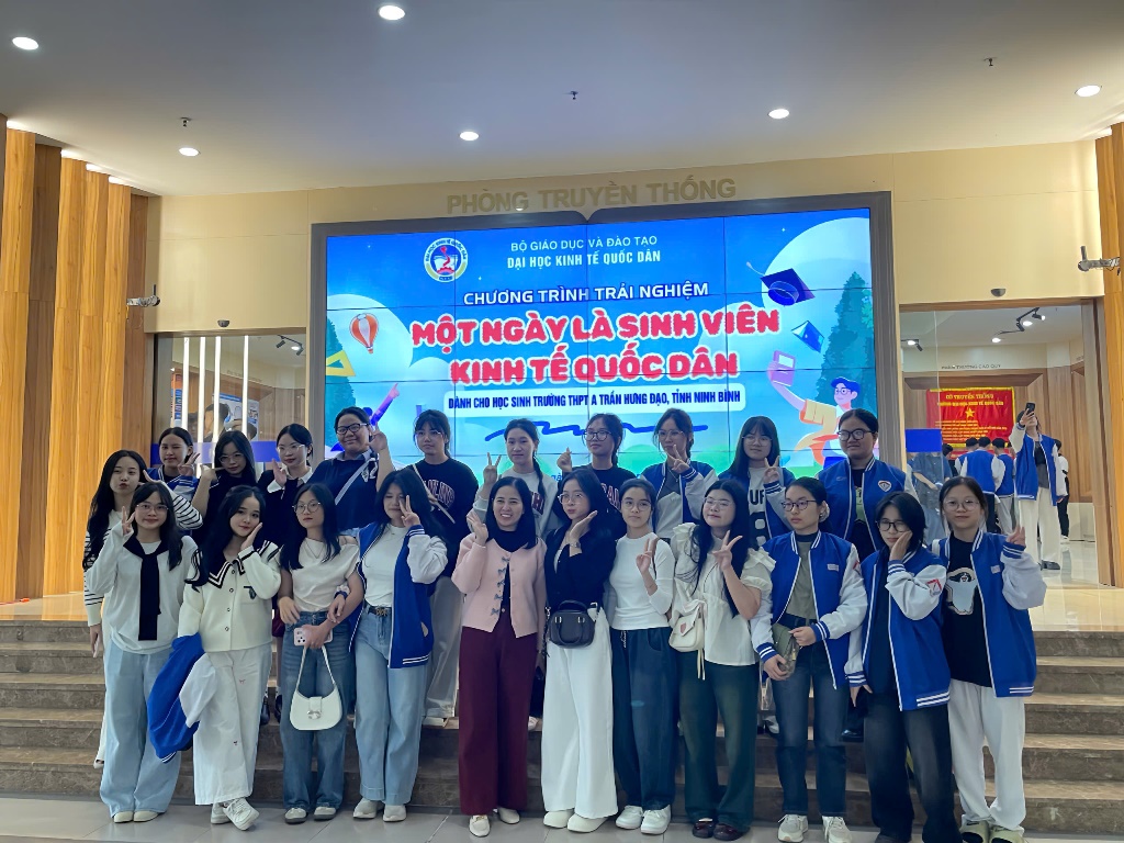 Ngày 02/11/2025, hơn 550 học sinh Trường THPT A Trần Hưng Đạo, tỉnh Ninh Bình đã hào hứng tham gia chương trình trải nghiệm “Một ngày là sinh viên Kinh tế Quốc dân”. Chương trình không chỉ là hoạt động tham quan, mà còn là dịp để các em khám phá môi trường học tập hiện đại, năng động, mang đậm bản sắc của một trong những trường đại học hàng đầu Việt Nam về kinh tế, quản lý và quản trị kinh doanh.