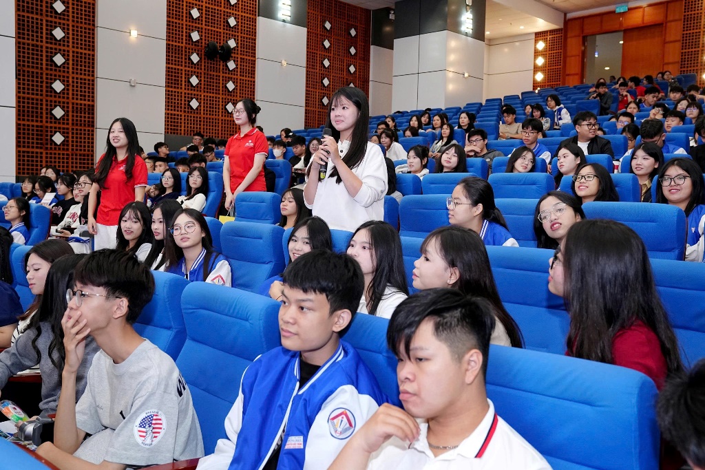 Các bạn học sinh hỏi đáp và hào hứng tham gia các trò chơi tại chương trình