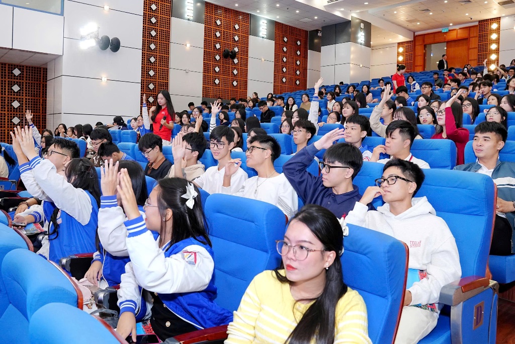 550 học sinh Trường THPT A Trần Hưng Đạo, tỉnh Ninh Bình hào hứng tham dự chương trình trải nghiệm “Một ngày là sinh viên Kinh tế Quốc dân”