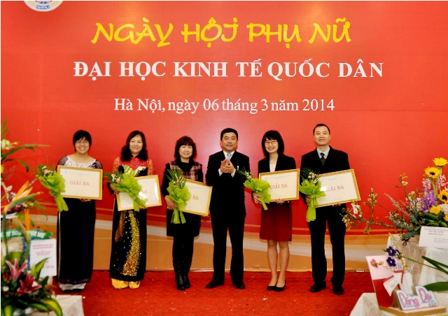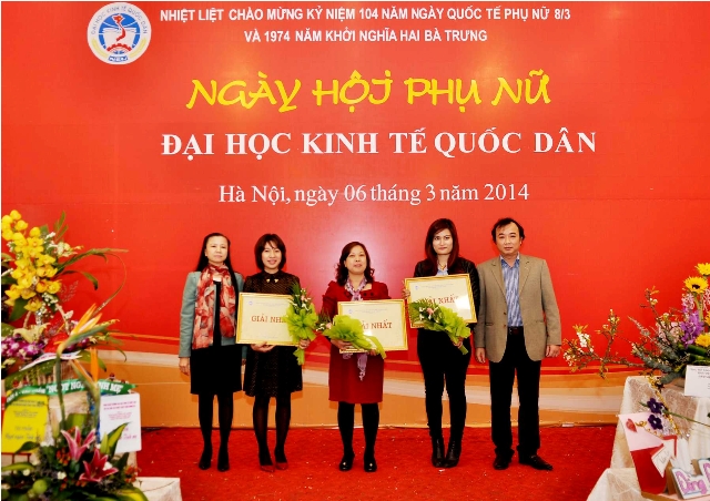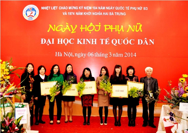 Phần trao giải diễn ra trong không khí tưng bừng của buổi liên hoan tại gác 3 Trung tâm dịch vụ và hỗ trợ đào tạo với thực đơn gồm 2 món ăn dân tộc: bún chả, bún riêu được các đầu bếp chế biến thật hấp dẫn. Giải nhất cắm hoa nghệ thuật thuộc về các đội 2 (Khoa Luật, Phòng Quản trị thiết bị, Khoa Tại chức); đội 7 (Khoa Kinh tế đầu tư, Viện Dân số và các vấn đề xã hội, Phòng Tổng hợp); đội15 (Viện Thương mại và Kinh tế quốc tế, Viện Chính sách công và quản lý, Khoa Ngoại ngữ). Quán quân của giải Karaoke là các đội 2 (Khoa Luật, Phòng Quản trị thiết bị, Khoa Tại chức); đội 5 (Viện Kế toán – Kiểm toán, Tổ Chuyên trách, Phòng Tài chính – Kế toán, Phòng Tổ chức cán bộ); đội14 (Khoa Thống kê, Khoa Kinh tế và Quản lý nguồn nhân lực, Nhà xuất bản). Đội 2 là đội duy nhất xuất sắc dành trọn cả 2 giảinhất ở hai cuộc thi. Cuộc đấu giá các tác phẩm nghệ thuật hoa dự thi đã làm cho buổi liên hoan thêm sôi động và khí thế. Ngày hội trở nên vô cùng ý nghĩa khisố tiền thu được từ hoạt động đấu giácác tác phẩm hoa nghệ thuật được dùng hết cho việc ủng hộ người nghèo. PGS.TS. Phạm Mạnh Hùng – Thứ trưởng Bộ Giáo dục và Đào tạo, Kiêm Bí thư Đảng ủy, Hiệu trưởng nhà trường đã đấu giá thành công tác phẩm "Tâm hồn Việt" của đội 5 (Viện Kế toán, Kiểm toán; Tổ chuyên trách; Phòng Tài chính – Kế toán; Phòng Tổ chức cán bộ). Công trình nghệ thuật đầy ý nghĩa này đã được PGS. TS. Hiệu trưởng gửi tặng phu nhân của GS. Mai Hữu Khuê – Nguyên Hiệu trưởng Đại học Kinh tế quốc dân nhân dịp ngày quốc tế phụ nữ 8.3.