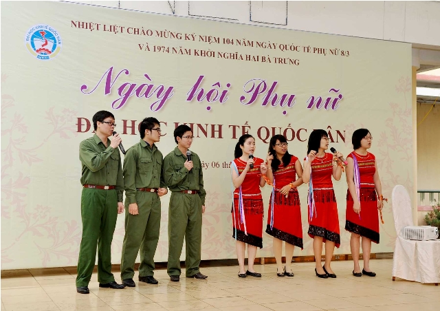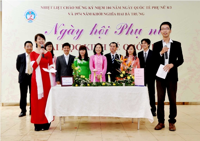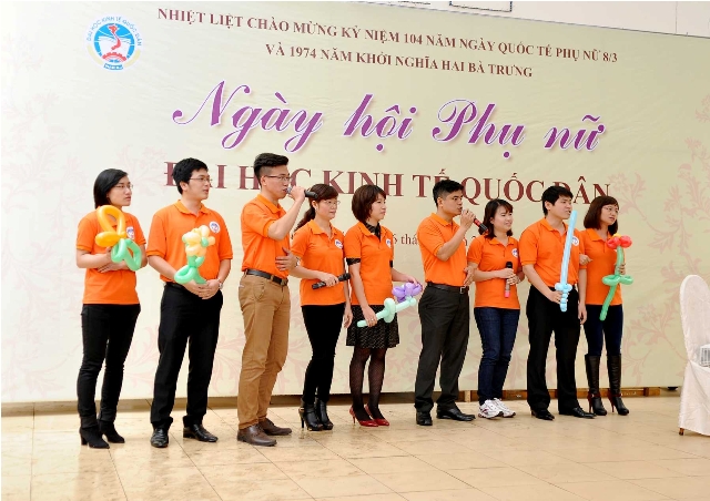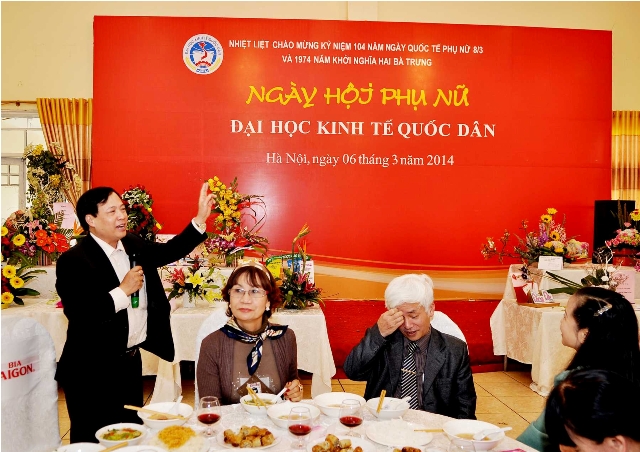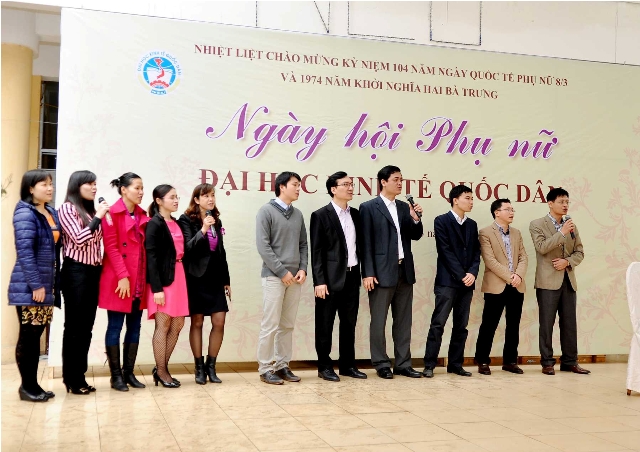 Trong không khí tưng bừng của cả nước kỷ niệm 104 năm ngày Quốc tế phụ nữ 8-03 và 1974 năm khởi nghĩa Hai Bà Trưng, sáng ngày 6 tháng 03, tại sân Ký túc xá -Nhà 11, Ban nữ công Công đoàn trường Đại học Kinh tế Quốc dân đã long trọng tổ chức “Ngày hội Phụ nữ Đại học Kinh tế Quốc dân”. Đến dự ngày Hội của chị em có PGS.TS Phạm Mạnh Hùng – Thứ trưởng Bộ Giáo dục và Đào tạo, kiêm Bí thư Đảng ủy, Hiệu trưởng; GS.TS Phan Công Nghĩa – Phó Hiệu trưởng; GS.TS Trần Thọ Đạt – Phó Hiệu trưởng, GS.TS Phạm Quang Trung – Phó Hiệu trưởng; TS. Nguyễn Hữu Đồng – Chủ tịch Công đoàn; Đại diện lãnh đạo các đơn vị trực thuộc trường, các tổ chức chính trị và đại diện công đoàn cụm 5 trường Đại học.