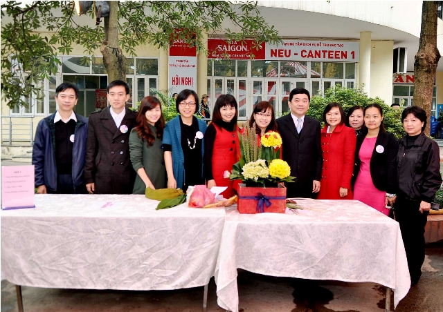 Ngày Hội của chị em được diễn ra trong không khí vui tươi, rộn ràng của cuộc thi cắm hoa nghệ thuật đan xen với cuộc thi hát Karaoke tại sân nhà 11 với 15 đội dự thi đến từ tất cả các Viện, Trung tâm, Phòng, Ban, Khoa, Bộ môn của trường. Cuộc thi đã thu hút sự quan tâm, cổ vũ, động viên của đông đảo cán bộ, giảng viên, công nhân viên của trường ở cả hai giới và mọi lứa tuổi. Cuộc thi cắm hoa với 15 tác phẩm đặc sắc, độc đáo thực sự là thách thức với Ban giám khảo. Những tác phẩm hoa với chủ đề chính hướng về người mẹ, về tình mẫu tử, về mái ấm gia đình, về người phụ nữ Việt Nam, hướng về mái trường Kinh tế Quốc dân thân yêu, về tổ quốc Việt Nam tươi đẹp đã thể hiện óc thẩm mỹ, sự tinh tế, bàn tay khéo léo của các cô giáo, các nữ cán bộ, công nhân viên nhà trường – Những người vốn hàng ngày chỉ quen với bảng đen, phấn trắng và các công việc phục vụ cho việc dạy và học. Màn thuyết trình lưu loát, ý nghĩa, ấn tượng của cô giáo trẻ Thùy Dương về tác phẩm hoa với chủ đề “Phụ nữ Việt Nam hiện đại” đại diện cho đội 15 (gồm Viện thương mại và Kinh doanh Quốc tế, Viện Chính sách công, Khoa Ngoại ngữ Kinh tế) đã thực sự chinh phục Ban giám khảo và đông đảo các đại biểu tham dự. Tác phẩm “Em trong mắt tôi” của đội 2 (gồm Khoa Luật, phòng Quản trị thiết bị, Khoa Đại học tại chức) cũng thu hút sự quan tâm của đông đảo đại biểu tham dự với phong cách thuyết trình duyên dáng, tinh thần đồng đội cao.