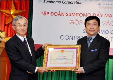GS.TS. Trần Thọ Đạt, Phó Hiệu trưởng trao giấy khen của Hiệu trưởng cho tập đoàn  Sumitomo