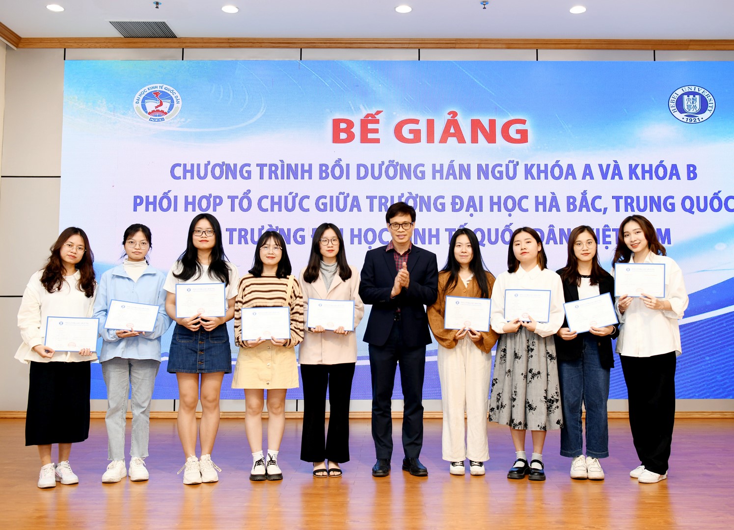 Chiều 16/3/2023, Trường Đại học Kinh tế Quốc dân phối hợp với Trường Đại học Hà Bắc, Trung Quốc đã tổ chức Bế giảng chương trình Bồi dưỡng Hán ngữ dưới hình thức trực tiếp và trực tuyến.
