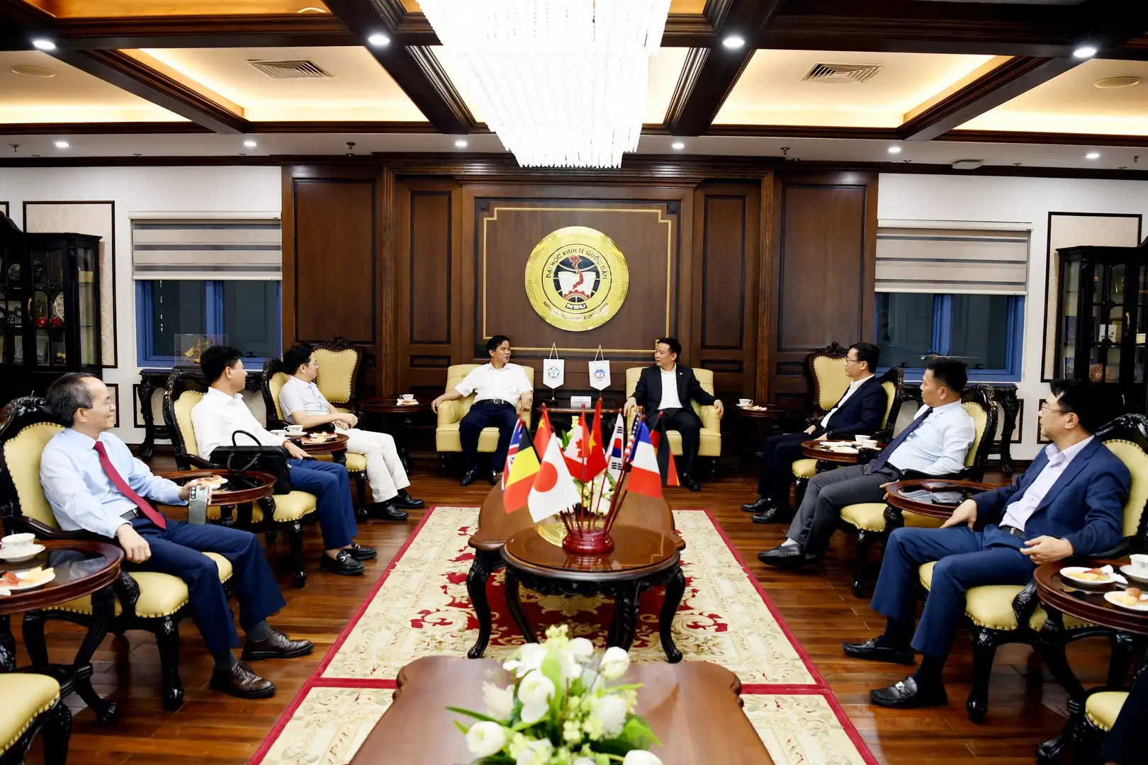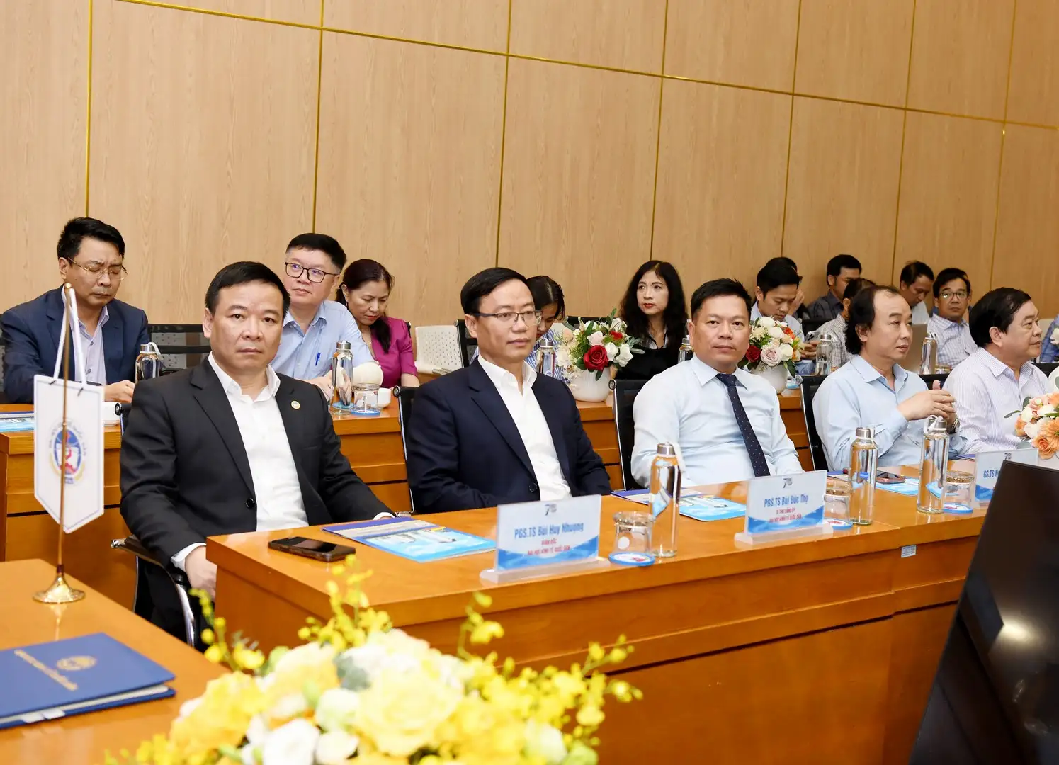 Về phía Đại học Kinh tế Quốc dân có: PGS.TS Bùi Huy Nhượng – Giám đốc Đại học; PGS.TS Bùi Đức Thọ – Bí thư Đảng ủy; GS.TS Nguyễn Thành Hiếu – Phó Giám đốc Đại học; TS. Nguyễn Hữu Đồng – Chủ tịch Công đoàn Đại học; GS.TS Trần Thọ Đạt – Chủ tịch Hội đồng Khoa học & Đào tạo; cùng đại diện lãnh đạo các Trường, Phòng ban, Khoa, Viện, Trung tâm; các tổ chức chính trị – xã hội, các cán bộ giảng viên của Đại học.
