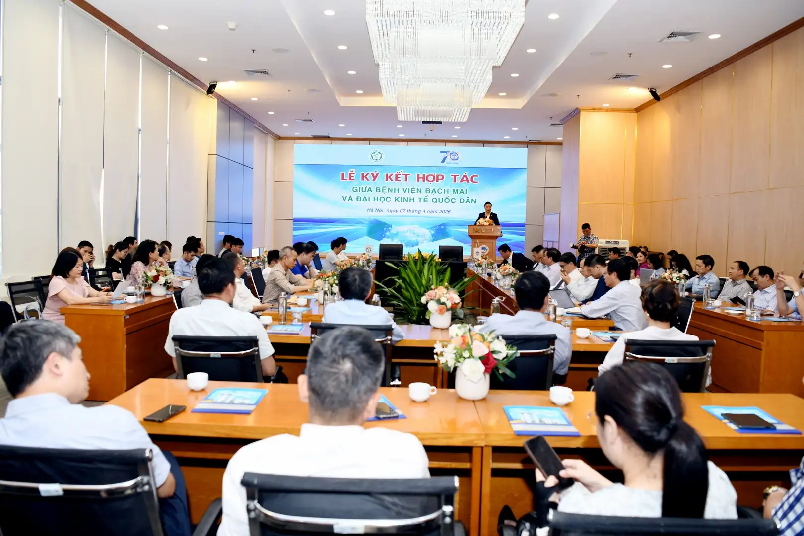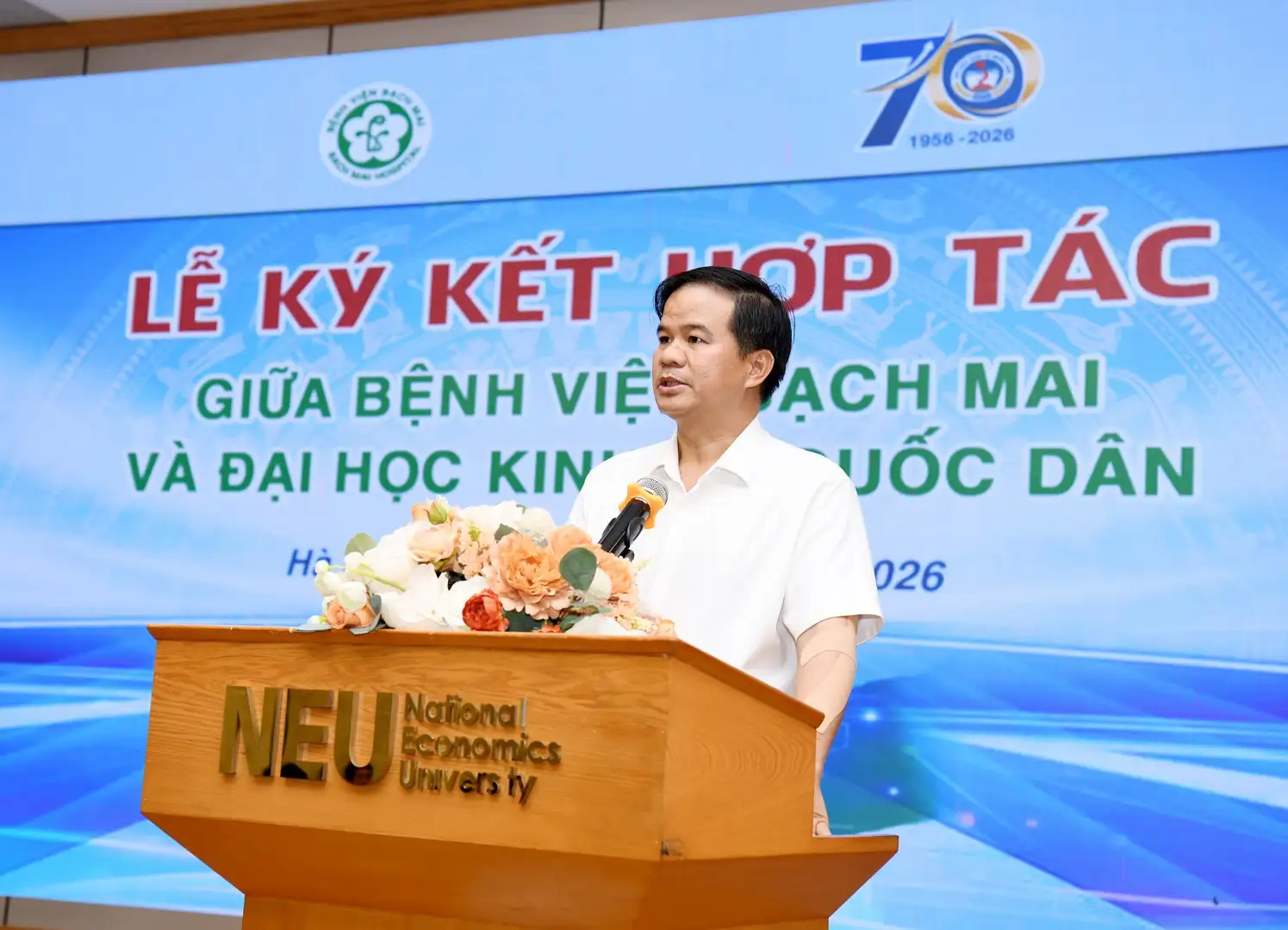 Ngày 07/4/2026, nhân Ngày Sức khỏe Thế giới (07/4) và Ngày Toàn dân hiến máu tình nguyện, Bệnh viện Bạch Mai và Đại học Kinh tế Quốc dân đã tổ chức Lễ ký kết thỏa thuận hợp tác giữa hai đơn vị, đồng thời diễn ra Chung khảo Cuộc thi “Thiết kế ý tưởng và kế hoạch truyền thông Trạm hiến máu Bạch Mai”.