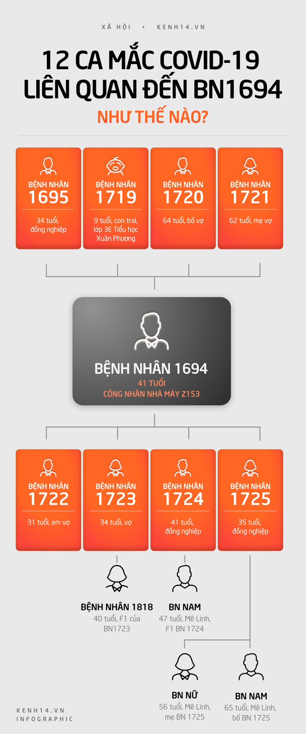 3 bệnh nhân còn lại 1695, 1724 và 1725 đều là đồng nghiệp, làm cùng nhà máy Z153 với 1694.