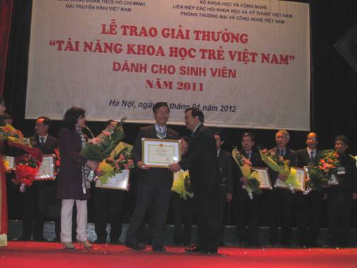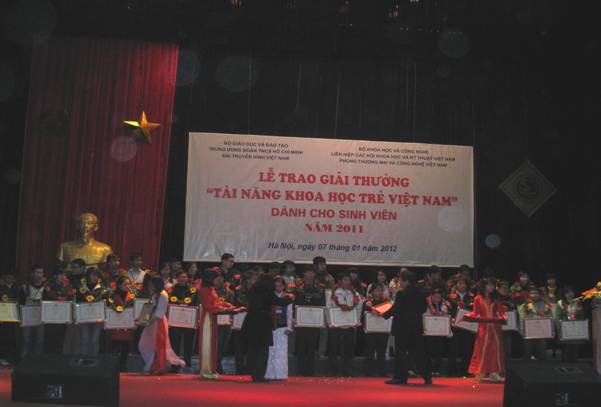Ngày 07-01-2012 vừa qua, Bộ Giáo dục và Đào tạo phối hợp với Bộ Khoa học và Công nghệ, Liên hiệp các Hội Khoa học và Kỹ thuật Việt Nam (Quỹ Hỗ trợ Sáng tạo Kỹ thuật Việt Nam – VIFOTEC), Trung ương Đoàn Thanh niên Cộng sản Hồ Chí Minh, Đài Truyền hình Việt Nam và Phòng Thương mại và Công nghiệp Việt Nam (VCCI) tổ chức Lễ trao Giải thưởng “Tài năng khoa học trẻ Việt Nam” năm 2011 dành cho sinh viên các trường đại học, học viện trên cả nước. Lễ trao giải được tổ chức long trọng  tại Hội trường Trường Đại học Giao thông Vận tải Láng Thượng, Đống Đa, Hà Nội.