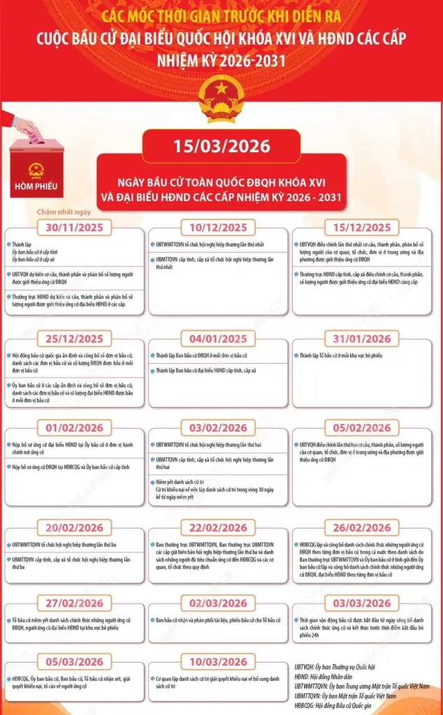 13/01/2026 2026-01-13 9:37Các mốc thời gian trước và sau khi diễn ra cuộc bầu cử đại biểu Quốc hội khóa XVI