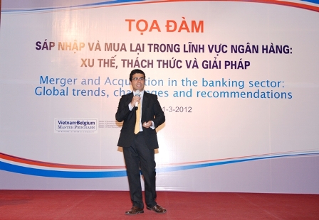 Ngày 1/3/2012, tại khách sạn Melia, Chương trình Cao học Việt-Bỉ, Trường ĐHKTQD đã tổ chức thành công buổi tọa đàm “Sáp nhập và mua lại trong lĩnh vực ngân hàng: Xu thế, thách thức và giải phápvới diễn giả là GS. Yassine Boudghene, chuyên gia tài chính của Ủy ban Châu Âu, giảng viên chương trình Cao học Việt – Bỉ và trường Kinh tế và Quản lý Solvay Brussels thuộc ĐHTH Tự do Bruxelles. Hơn 200 cán bộ, chuyên gia đến từ các tổ chức tài chính – ngân hàng và các trường đại học đã đến tham dự buổi tọa đàm. Các đài truyền hình InfoTV, VITV, VTC10 và đông đảo phóng viên các báo (Vietnamnet, VnExpress, CafeF, VNEconomy, VIR…) cũng đến đưa tin về hội thảo.