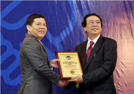 Ông Nguyễn Đức Phương, phó Giám đốc Ngân hàng Bản Việt Chi nhánh Hà Nội trao học bổng cho sinh viên