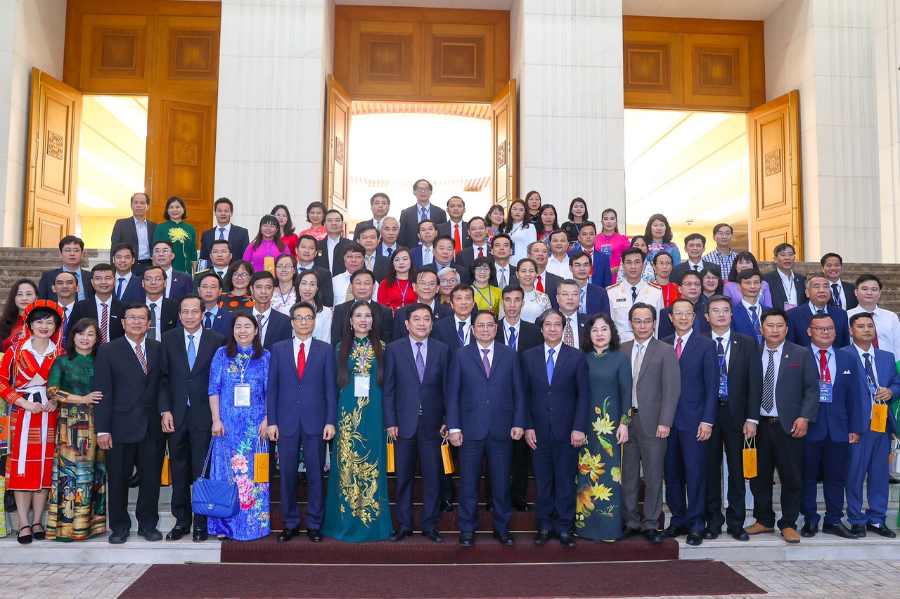 GS.TS Trần Thọ Đạt chụp ảnh kỉ niệm cùng Thủ tướng Phạm Minh Chính cùng 400 nhà giáo tiêu biểu dự đại lễ kỷ niệm 40 năm ngày Nhà giáo Việt Nam do Bộ GD&ĐT tổ chức