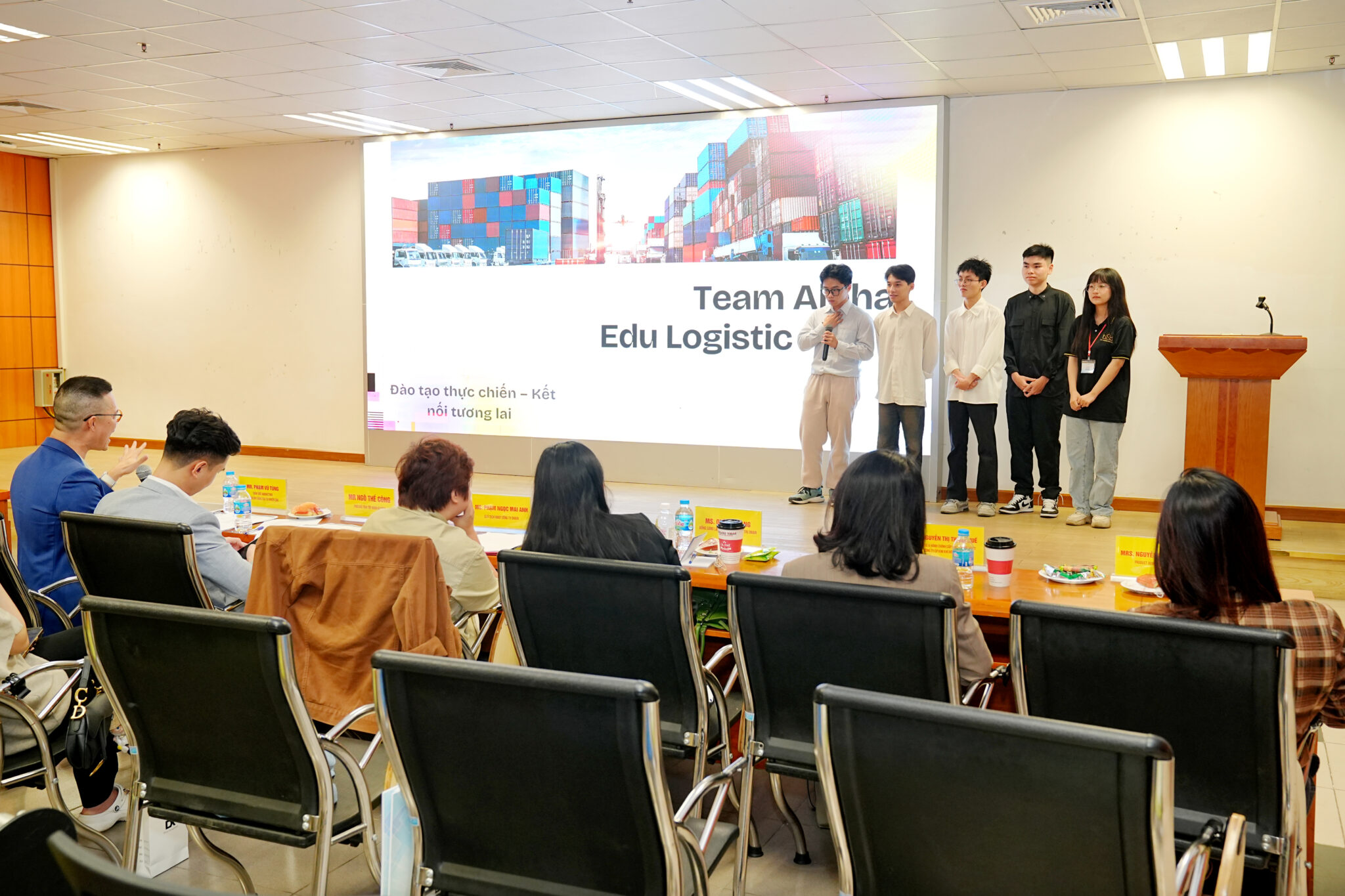 Tiếp đến, ý tưởng EduLogistic của đội Alpha cũng không kém phần hấp dẫn với phần thuyết trình vô cùng thuyết phục. EduLogistic tích hợp mô phỏng trực quan, AI phân tích logistics, học tập qua trò chơi và trợ lý AI cá nhân hóa, giúp sinh viên rút ngắn thời gian học lý thuyết, nâng cao kỹ năng thực tế với chi phí tối ưu.