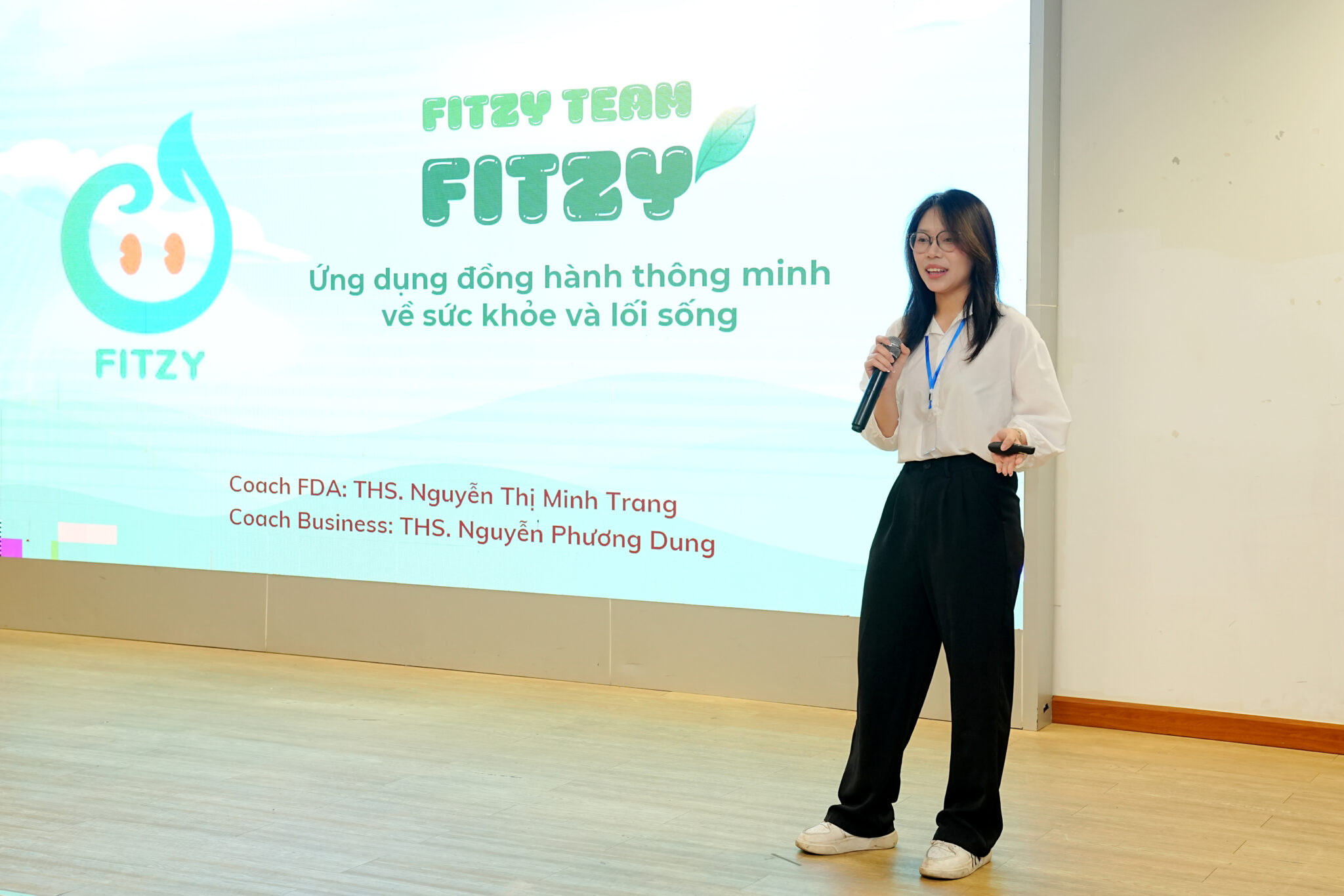 Nhóm Fitzy mang đến một giải pháp công nghệ toàn diện, giúp người dùng theo dõi dinh dưỡng, luyện tập và giấc ngủ, đồng thời duy trì lối sống lành mạnh một cách hiệu quả. Với phần thuyết trình ấn tượng và những video mô phỏng app chân thực, nhóm đã chinh phục Ban giám khảo bằng tính thực tế và tiềm năng ứng dụng cao của sản phẩm.