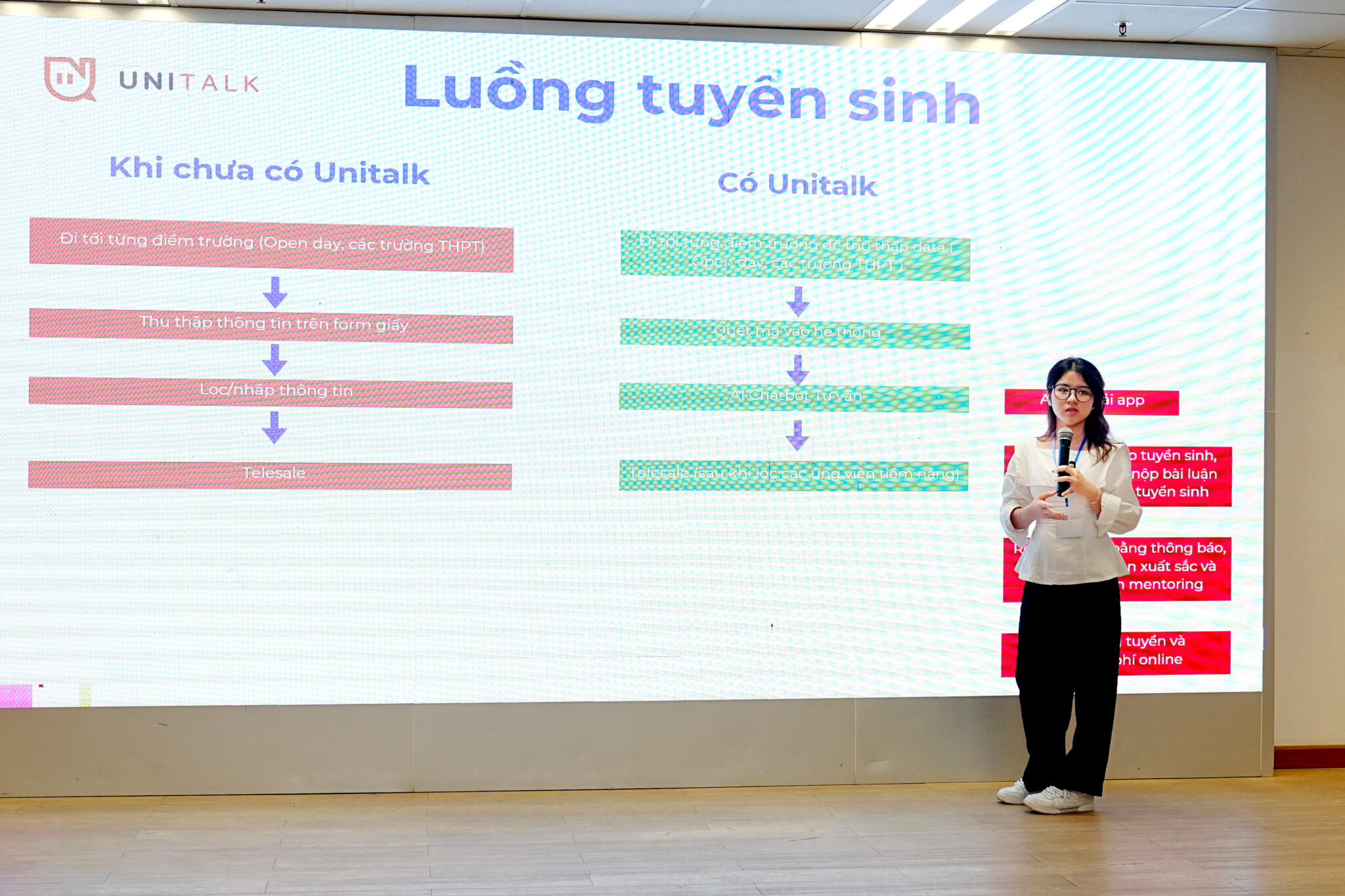Đội Omega khép lại vòng chung kết với UniTalk – nền tảng hướng nghiệp thông minh ứng dụng AI. UniTalk giúp học sinh khám phá bản thân qua trắc nghiệm MBTI, Holland, phân tích dữ liệu học tập để dự đoán khả năng trúng tuyển, cập nhật xu hướng nghề nghiệp và kết nối doanh nghiệp. Với chatbot tư vấn 24/7, UniTalk cá nhân hóa lộ trình học tập, giúp học sinh chọn ngành phù hợp, giảm tỷ lệ làm trái ngành và tối ưu hóa cơ hội nghề nghiệp.