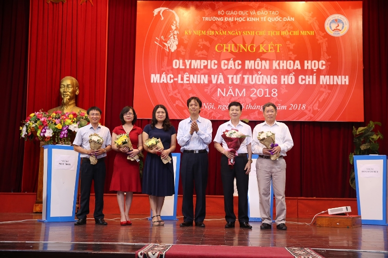 Chào mừng kỷ niệm 128 năm Ngày sinh của Chủ tịch Hồ Chí Minh, Cuộc thi Olympic các môn khoa học Mác – Lênin và Tư tưởng Hồ Chí Minh là một cuộc thi thường niên nhằm góp phần nâng cao nhận thức, tư tưởng, lập trường cho sinh viên. Đồng thời, cuộc thi còn khích lệ tinh thần yêu thích, ham học hỏi, thúc đẩy phong trào học tập, nghiên cứu lý luận chính trị ở sinh viên một cách sâu rộng với nhiều hình thức phong phú. Bên cạnh đó, cuộc thi còn giúp phát hiện những nhân tố tiềm năng cho tổ chức Đảng. Năm nay, cuộc thi đã thu hút gần 1.600 bạn sinh viên hào hứng tham gia tranh tài. 25 bạn sinh viên xuất sắc nhất được chia làm 5 đội thi góp mặt trong đêm thi Chung kết. Ban giám khảo của cuộc thi gồm có 5 thành viên: PGS.TS An Như Hải – Nguyên Viện phó viện Kinh tế Chính trị, Học viện Chính trị Quốc gia Hồ Chí Minh; TS Nguyễn Hữu Công – Trưởng khoa Lý luận Chính trị; PGS.TS Nguyễn Thị Thanh Hiếu – Phó Trưởng khoa Lý luận Chính trị; TS Nguyễn Hồng Sơn – Trưởng Bộ môn, khoa Lý luận Chính trị; TS Nghiêm Châu Giang – Giảng viên khoa Lý luận Chính trị.
