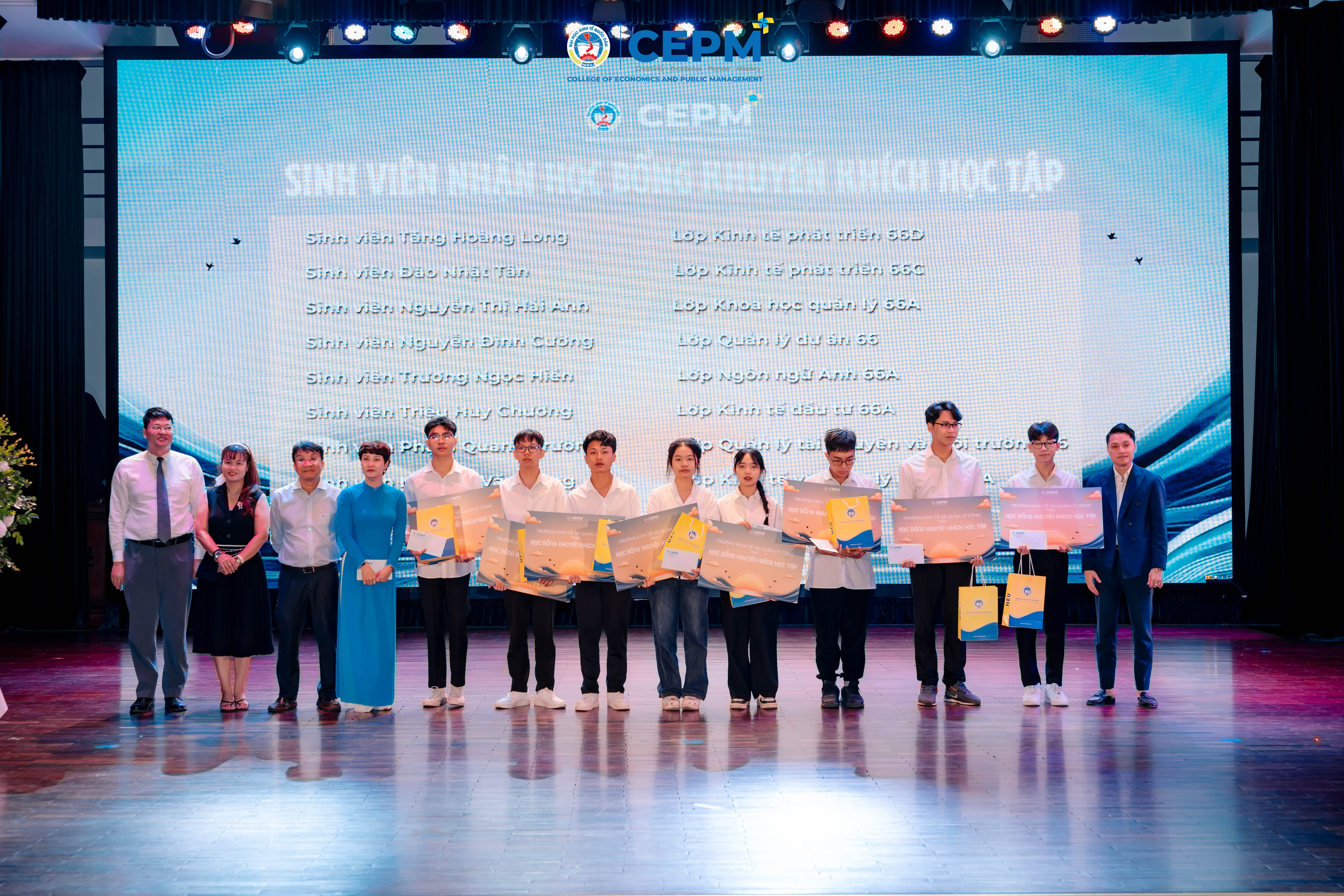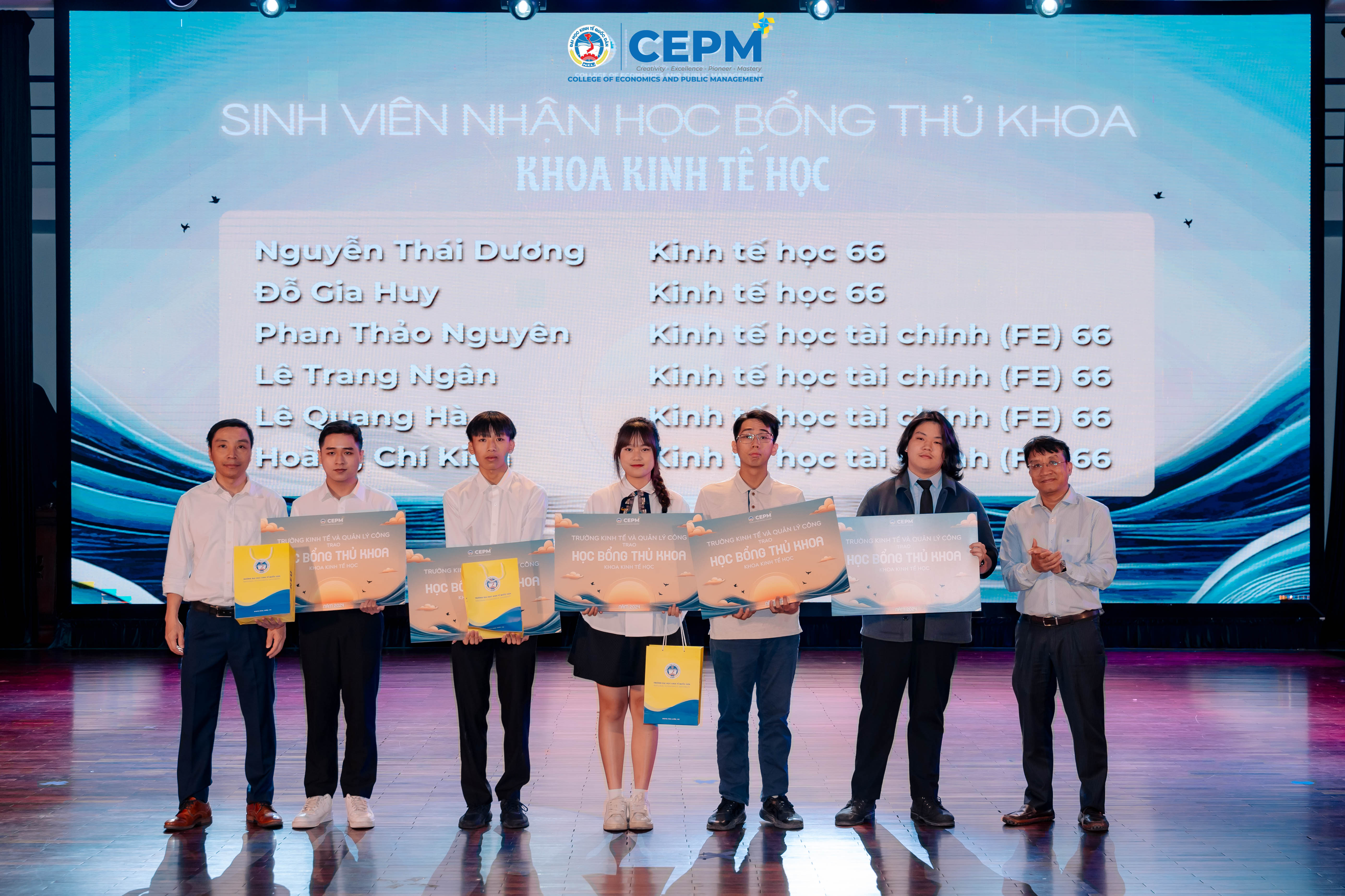 Chương trình còn có phần trao học bổng cho các thủ khoa đầu vào và học bổng khuyến khích học tập nhằm ghi nhận những nỗ lực của các tân sinh viên trong kỳ thi vừa qua. Phần văn nghệ sôi động với các tiết mục đa dạng từ hát, múa đến các loại hình nghệ thuật dân gian kịch đã làm nổi bật tinh thần tuổi trẻ, nhiệt huyết và sáng tạo của sinh viên. Qua đó, chương trình không chỉ là lễ chào đón mà còn là dấu ấn khởi đầu cho hành trình thanh xuân đầy hy vọng và khát vọng cống hiến của tân sinh viên Kinh tế và Quản lý công.