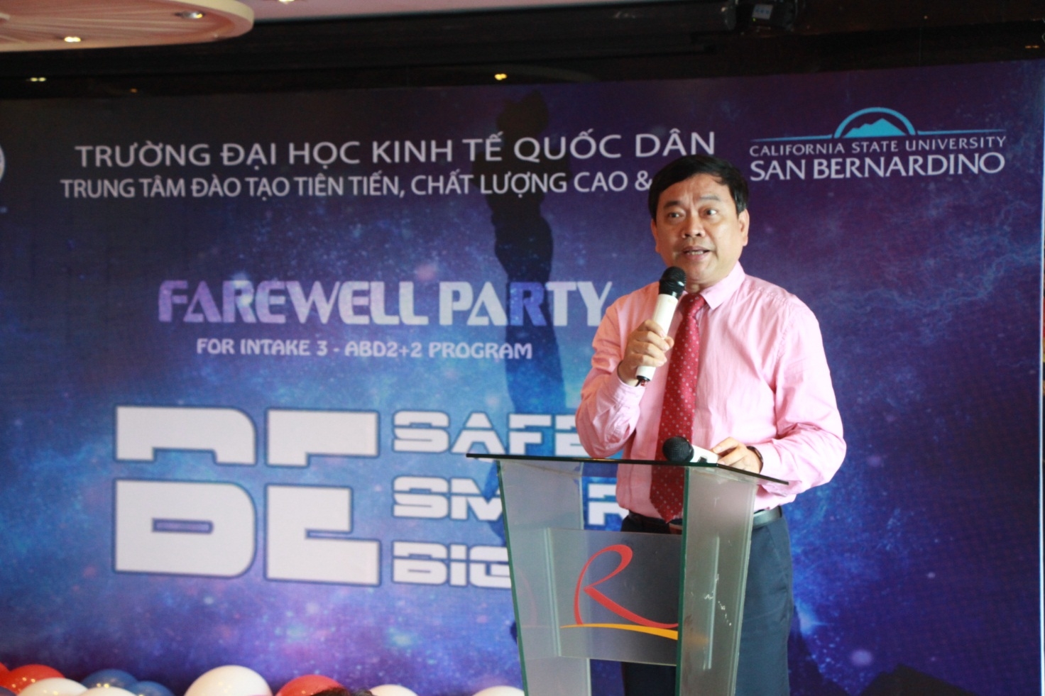Ngày 16 tháng 9 năm 2016, Trường ĐHKTQD đã tổ chức buổi chia tay cho 18 sinh viên Chương trình Du học Mỹ ABD2+2 khóa 3 chuyển tiếp sang Hoa Kỳ để học tiếp 2 năm trong chương trình đào tạo. Phát biểu tại buổi lễ, GS. TS Trần Thọ Đạt – Hiệu trưởng trường Đại học Kinh tế Quốc dân đánh giá cao chương trình hợp tác đào tạo ABD2+2 và chúc mừng thành công của chương trình trong những năm vừa qua. GS.TS Trần Thọ Đạt cũng gửi lời chúc mừng các em đã hoàn thành một nửa chặng đường và nhấn mạnh tầm quan trọng của việc học tập 2 năm cuối tại CSUSB.Thầy căn dặn các em cần cố gắng hơn nữa trong chặng đường khó khăn sắp tới; cho dù bất kỳ hoàn cảnh nào, có khó khăn đến đâu cũng phải quyết tâm với nỗ lực cao nhất và luôn giữ được hình ảnh đẹp của sinh viên ĐHKTQD trong con mắt bạn bè quốc tế.