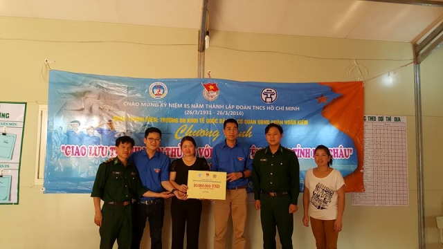 Thực hiện chương trình kết nghĩa giữa Thành đoàn Hà Nội và Ban Thanh niên Quân đội, Đoàn trường ĐH Kinh tế Quốc dân và Đoàn Thanh niên cơ quan UBND quận Hoàn Kiếm cùng với Ban Thanh niên bộ đội Biên phòng Lai Châu Đoàn triển khai chương trình "Giao lưu Tuổi trẻ Thủ đô với bộ đội biên phòng Lai Châu" và phối hợp thực hiện hoạt động tình nguyện "Vì trẻ em miền núi" tại Lai Châu trong 3 ngày, từ 01-03/4/2016. Đoàn đã thực hiện và hoàn thành các nội dung hoạt động gồm: