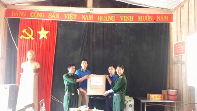 Đại diện Đoàn trường ĐH Kinh tế Quốc dân cũng đã trao tặng biểu trưng của Nhà trường cho trạm biên phòng Kẻng Mỏ, đồn biên phòng Ka Lăng và trường mầm non Tá Bạ để lưu niệm.