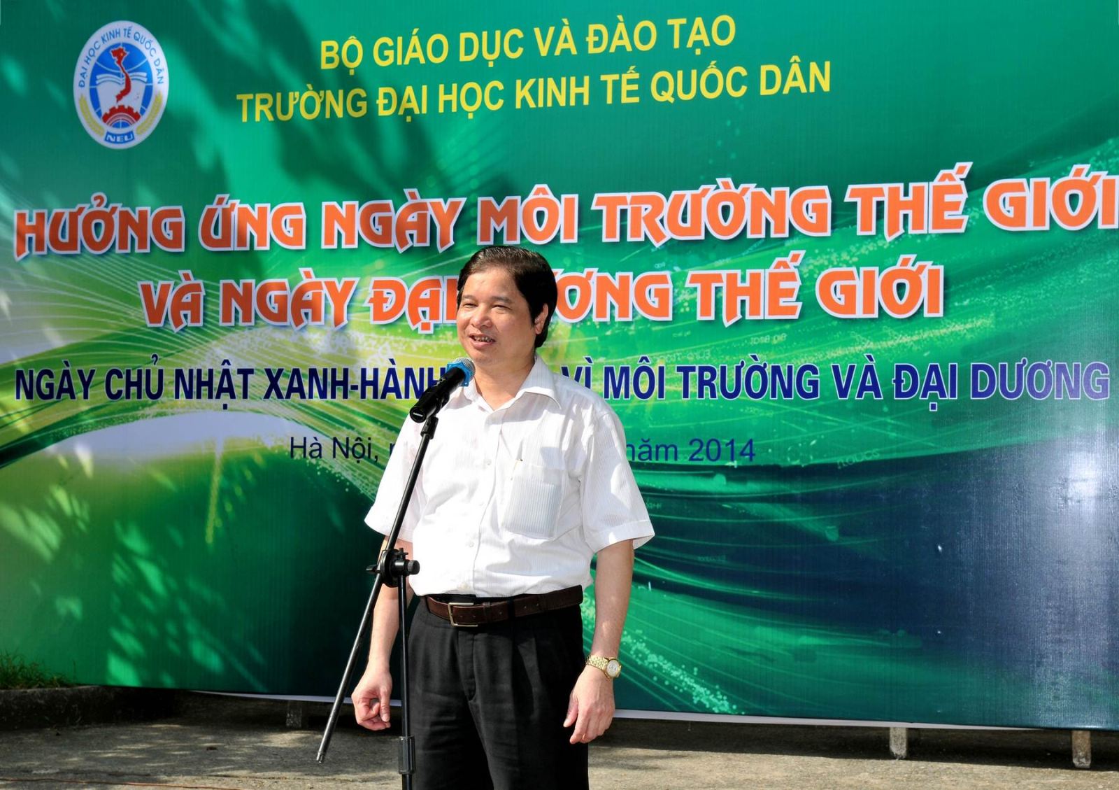 Căn cứ theo công văn số 2585/BGDĐT ngày 22/05/2014 về việc tổ chức các hoạt động hưởng ứng ngày Môi trường thế giới (5/6) và ngày Đại dương thế giới (8/6), Chủ nhật 01/06/2014 vừa qua, Trường đại học Kinh tế Quốc dân đã tổ chức chương trình hưởng ứng với chủ đề “Ngày chủ nhật xanh – Hành động vì môi trường và đại dương”.
