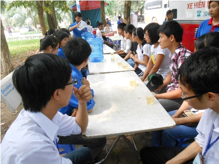 Khu trại Hiến máu về trưa vẫn khá nhiều bạn chờ lấy máu