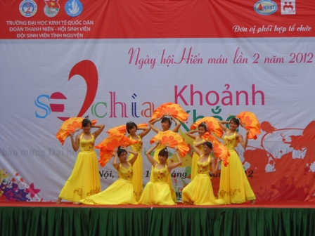 Hòa chung trong không khí sôi nổi của cuộc vận động hiến máu nhân đạo trên toàn thành phố Hà Nội, thiết thực chào mừng Đại hội Đoàn TNCS HCM thành phố Hà Nội, được sự chỉ đạo của Đảng ủy – Ban giám hiệu, Đoàn Thanh niên – Hội Sinh viên trường ĐH Kinh tế Quốc dân, ngày 14 tháng 10 năm 2012 vừa qua, Đội Sinh viên Tình nguyện kết hợp với Viện huyết học truyền máu Trung ương tổ chức chương trình Ngày hội Hiến máu lần thứ 2 năm 2012 mang tên “Sẻ chia khoảnh khắc”. Với mong muốn giúp đỡ nhiều người bệnh đang gặp nhiều khó khăn, đồng thời đẩy mạnh phong trào hiến máu nhân đạo trong nhà trường. Ngày hội Hiến máu 2012 – Sẻ chia khoảnh khắc là cầu nối giúp các bạn sinh viên đặc biệt là sinh viên khóa mới tiếp xúc và tới gần hơn với các hoạt động xã hội có ý nghĩa thiết thực.