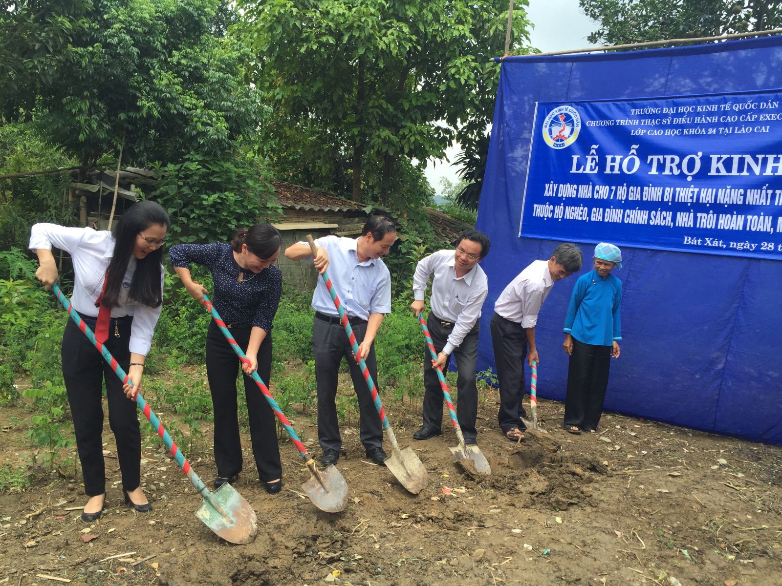 Ngày 28 tháng 8 năm 2016, đoàn cán bộ, giảng viên và học viên Chương trình Thạc sĩ Điều hành cao cấp – Executive MBA, Lớp Cao học khóa 24 tại Lào Cai, Trường Đại học Kinh tế quốc dân do PGS.TS Hoàng Văn Cường, Phó Hiệu trưởng làm Trưởng đoàn đã đến thăm và trao kinh phí hỗ trợ xây dựng nhà ở mới cho 7 hộ dân thuộc 2 xã Cốc San và Phìn Ngan, huyện Bát Xát, tỉnh Lào Cai với tổng giá trị là 210 triệu đồng.