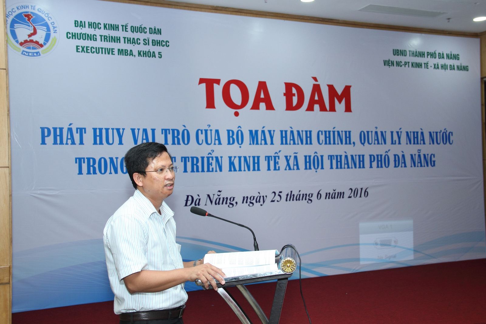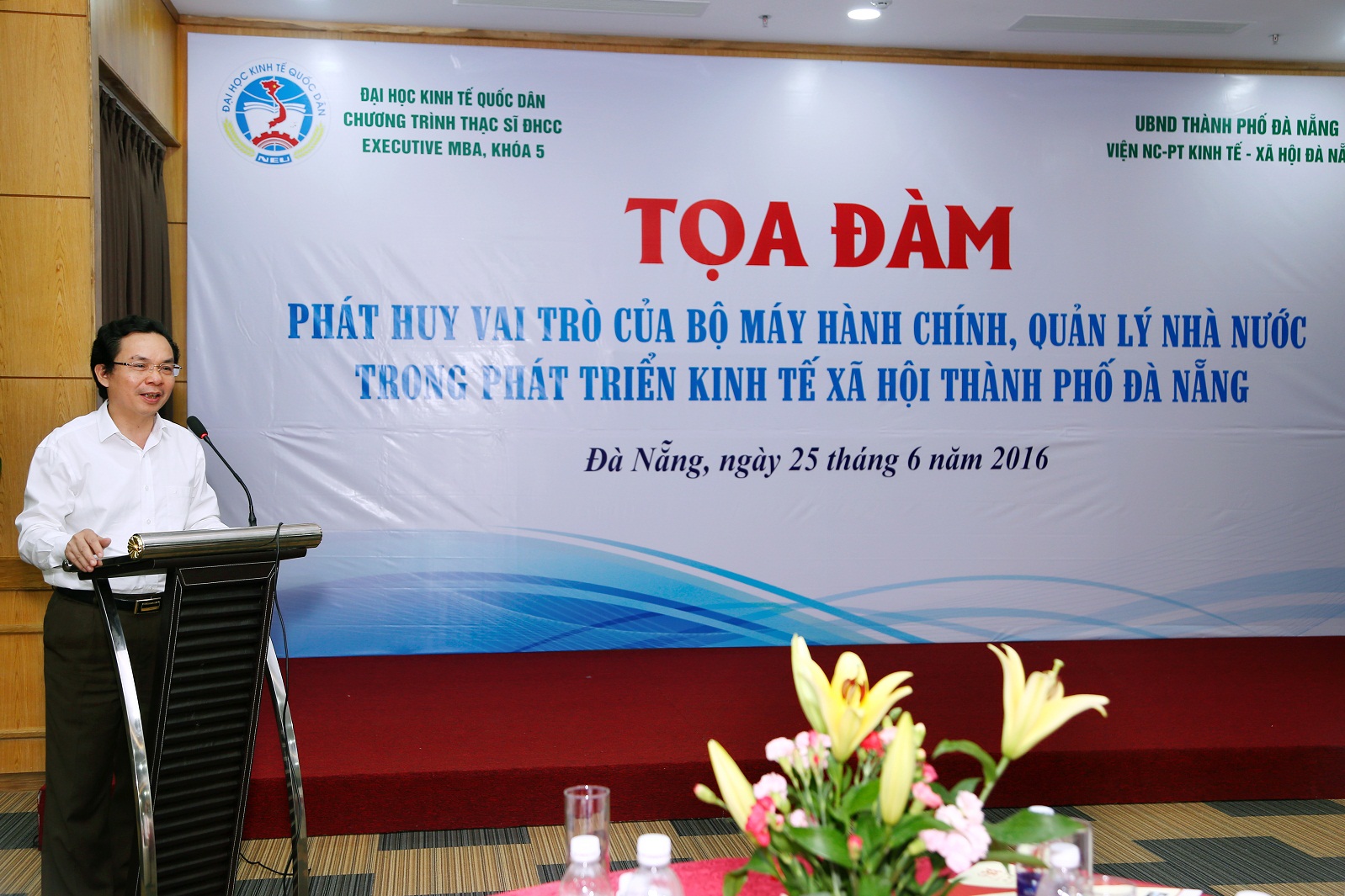 Phát biểu tổng kết PGS.TS Hoàng Văn Cường- Phó Hiệu trưởng trân trọng cảm ơn lãnh đạo TP. Đà Nẵng, các doanh nghiệp đã tham dự buổi tọa đàm của học viên chương trình và đã tạo điều kiện tốt nhất cho học viên tham gia đợt thực tế, để từ đó giúp học viên nâng cao tính thực tiễn, học hỏi công tác quản lý, trau dồi kiến thức, phục vụ tốt nhất cho việc học tập trên lớp. PGS.TS Hoàng Văn Cường cho rằng đợt thực tế này là rất may mắn cho học viên khóa 5 khi được đến với TP Đà Nẵng đang phát triển mạnh mẽ, con người thân thiện, mến khách, chính điều này sẽ giúp cho các nhà quản lý cần hoàn thiện hơn, để áp dụng có hiệu quả trong các đơn vị hiện nay mình đang công tác.