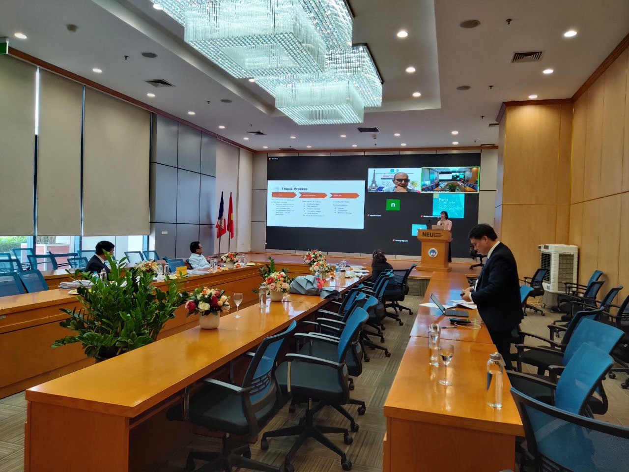 Vào hai ngày 17 và 19/12/2021 vừa qua, tại Hà Nội, trường Đại học Kinh tế Quốc dân đã tổ chức thành công buổi Lễ bảo vệ luận văn cho khóa đào tạo Thạc sĩ Điều hành Quản trị Kinh doanh Quốc tế trong khuôn khổ hợp tác giữa Đại học Quản trị Paris (PGSM) và Trường Đại học Kinh tế Quốc dân do Viện Ngân hàng Tài chính (SBF) vận hành.