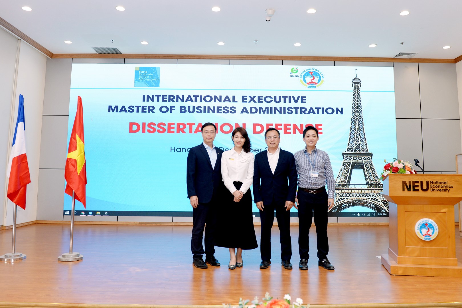 Vào hai ngày 17 và 19/12/2021 vừa qua, tại Hà Nội, trường Đại học Kinh tế Quốc dân đã tổ chức thành công buổi Lễ bảo vệ luận văn cho khóa đào tạo Thạc sĩ Điều hành Quản trị Kinh doanh Quốc tế trong khuôn khổ hợp tác giữa Đại học Quản trị Paris (PGSM) và Trường Đại học Kinh tế Quốc dân do Viện Ngân hàng Tài chính (SBF) vận hành.