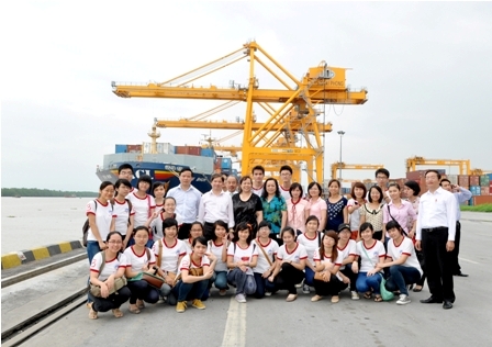 Theo lịch trình, Đoàn tiếp tục tới Cảng Hải Phòng. Tại trụ sở chính của Cảng Hải Phòng, Đoàn đã nhận được sự tiếp đón nồng hậu của ông Cao Hải Phong – Trưởng phòng Kế hoạch Cảng Hải Phòng và các cán bộ làm việc tại Cảng. Ông Cao Hải Phong cũng đã dành nhiều thời gian cho Đoàn để giới thiệu về Cảng, quy trình xuất nhập khẩu và chiến lược phát triển ra biển của Cảng Hải Phòng trong tương lai.