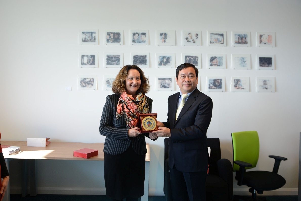 Sau đó, Đoàn đã tới thăm và làm việc với ĐHTH Tự do Bruxelles (ULB) và trường Kinh tế và Quản lý Solvay Brussels (SBS-EM) – là đối tác của Trường Đại học KTQD trong khuôn khổ Chương trình Cao học Việt – Bỉ. Tại đây, đoàn đã làm việc với  Hiệu trưởng ULB – GS. Didier Viviers, Giám đốc SBS-EM – GS. Bruno Van Pottelsberghe và các giáo sư đồng giám đốc Chương trình Cao học Việt-Bỉ. Hai bên đã thảo luận và đánh giá cao những kết quả hợp tác sau 20 năm của Chương trình, và đề xuất kế hoạch phát triển, đổi mới chương trình để đáp ứng các nhu cầu đào tạo ngày càng cao tại Việt Nam. Đoàn cũng đã nghe GS. Bruno Van Pottelsberghe  và GS. Marianne Claes – Đồng Giám đốc Chương trình Cao học Việt Bỉ trình bày về những đổi mới của chương trình Global MBA tại SBS-EM nhằm giúp học viên phát triển sự nghiệp tốt hơn trong một thế giới luôn thay đổi và đề xuất cách thức trao đổi học viên với chương trình tại Việt Nam. GS. Trần Thọ Đạt đã cảm ơn sự hợp tác chặt chẽ của ULB và SBS-EM với trường Đại học KTQD về việc thực hiện Chương trình Cao học Việt-Bỉ trong 20 năm qua và tin tưởng rằng, với sự tâm huyết của đội ngũ cán bộ quản lý Chương trình và kinh nghiệm đào tạo của SBS-EM, Chương trình Cao học Việt Bỉ sẽ tiếp tục đạt được nhiều thành công, giúp đào tạo nguồn nhân lực chất lượng cao cho Việt Nam trong bối cảnh hội nhập và toàn cầu hóa mạnh mẽ hiện nay.