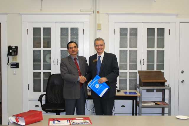 GS. TS Hoàng Đức Thân chụp ảnh lưu niệm với GS. TS David Gauthier – Phó Hiệu trưởng Đại học Tổng hợp Saint Mary’s