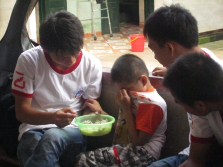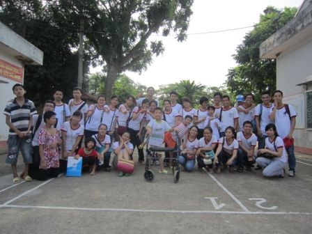 Đúng sáng 15/7, như đã hẹn, các thành viên trong đoàn có mặt đầy đủ mang theo gần 500 đầu sách vở, 100 bộ quần áo, 100 lọ thuốc mắt, 4 thùng bánh kẹo và số tiền 1 triệu đồng đã quyên góp được lên đường đến với Thụy An – đến với những em nhỏ không may bị tàn tật.