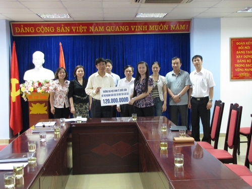 Ngày 06/5/2013, đoàn cán bộ, đoàn viên công đoàn trường ĐHKTQD do PGS.TS. Đào Thị Phương Liên – Chủ tịch Công đoàn Trường làm trưởng đoàn đã tới thăm và trao tặng số tiền mặt 120.000.000 (một trăm hai mươi triệu đồng) cho Công đoàn giáo dục tỉnh Lào Cai. Cùng tham gia đoàn còn có TS. Nguyễn Hữu Đồng – UVBCHCĐ Trường, Trưởng Ban Tuyên giáo của Công đoàn Trường; TS. Nguyễn Thị Định – Ủy viên BCHCĐ Trường, Trưởng khoa Bảo hiểm; đồng chí Phạm Tùng Lâm – Chủ tịch Công đoàn Trung tâm Dịch vụ hỗ trợ đào tạo; đồng chí Lương Thị Thu – cán bộ Văn phòng Công đoàn. Đón tiếp đoàn tại Sở Giáo dục và Đào tạo tỉnh Lào Cai có đồng chí Nguyễn Anh Ninh – Giám đốc Sở; đồng chí Phạm Xuân Yên – chủ tịch Công đoàn ngành Giáo dục tỉnh Lào Cai cùng các cán bộ của cơ quan Sở và Công đoàn ngành Giáo dục tỉnh Lào Cai. Đồng chí Đào Thị Phương Liên – Chủ tịch Công đoàn Trường thay mặt cho Trường ĐH Kinh tế quốc dân phát biểu nêu rõ đây là chủ trương được Đảng ủy và Ban Giám hiệu Nhà trường quan tâm, chỉ đạo duy trì hàng năm, để thể hiện tình cảm và sự chia sẻ của cán bộ, giảng viên Nhà trường đối với các đồng nghiệp và các em học sinh đang làm việc và học tập tại các địa bàn khó khăn vùng cao. Năm nay việc trao tặng quà được thực hiện tại tỉnh Lào Cai còn có ý nghĩa củng cố thêm mối quan hệ hợp tác giữa Nhà trường với Sở Giáo dục – Đào tạo tỉnh Lào Cai trong lĩnh vực đào tạo vốn đã được thiết lập và duy trì tốt từ nhiều năm nay. PGS.TS. Đào Thị Phương Liên chúc các thầy, cô giáo và các em học sinh tỉnh Lào Cai khắc phục khó khăn tiếp tục đạt được những thành tích cao trong dạy và học để cung cấp cho tỉnh Lào Cai nguồn nhân có chất lượng đáp ứng yêu cầu phát triển kinh tế – xã hội của Tỉnh trong điều kiện mới. Thay mặt cho các thầy, cô giáo và các em học sinh tỉnh Lào Cai, đồng chí Nguyễn Anh Ninh – Giám đốc Sở đã xúc động phát biểu bày tỏ lời cảm ơn đối với tập thể cán bộ, giáo viên Trường Đại học Kinh tế quốc dân đã dành sự quan tâm, động viên cả về tinh thần lẫn vật chất cho giáo viên và học sinh trong Tỉnh. Trong lời phát biểu, đồng chí Giám đốc Sở còn thể hiện tinh thần quyết tâm thi đua dạy tốt, học tốt của toàn thể giáo viên và học sinh tỉnh Lào Cai để không phụ tấm lòng và tình cảm của cán bộ, giáo viên trường ĐHKTQD.