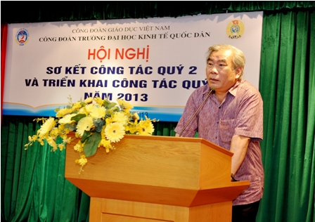 Đến dự và phát biểu tại Hội nghị, GS.TS. Phan Công nghĩa- Phó hiệu trưởng nhà trường đã đánh giá cao báo cáo sơ kết của Công đoàn trường. GS nhấn mạnh đây là bức tranh mô tả đầy đủ và toàn diện về các nhiệm vụ và hoạt động của CĐ trường trong qúy 2 vừa qua. Thay mặt Nhà trường, Giáo sư Phó Hiệu trưởng đã biểu dương, ghi nhận những kết quả mà CĐ trường đã đạt được, nhất trí với những phương hướng đề ra cho Qúy 3. Bên cạnh đó Giáo sư cũng chỉ rõ: Công đoàn trường cần nhìn nhận lại vai trò và trách nhiệm của BCHCĐ trường và các CĐ cơ sở trước những việc đã và đang xảy ra gây ảnh hưởng xấu đến uy tín của Nhà trường và yêu cầu trong quý 3, công đoàn trường cần: