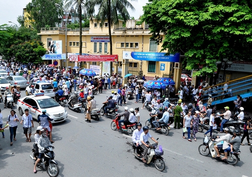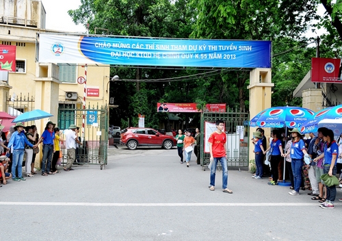 Quang cảnh cổng trường ĐH KTQD vào giờ phút kết thúc đợt thi tuyển sinh đại học năm 2013